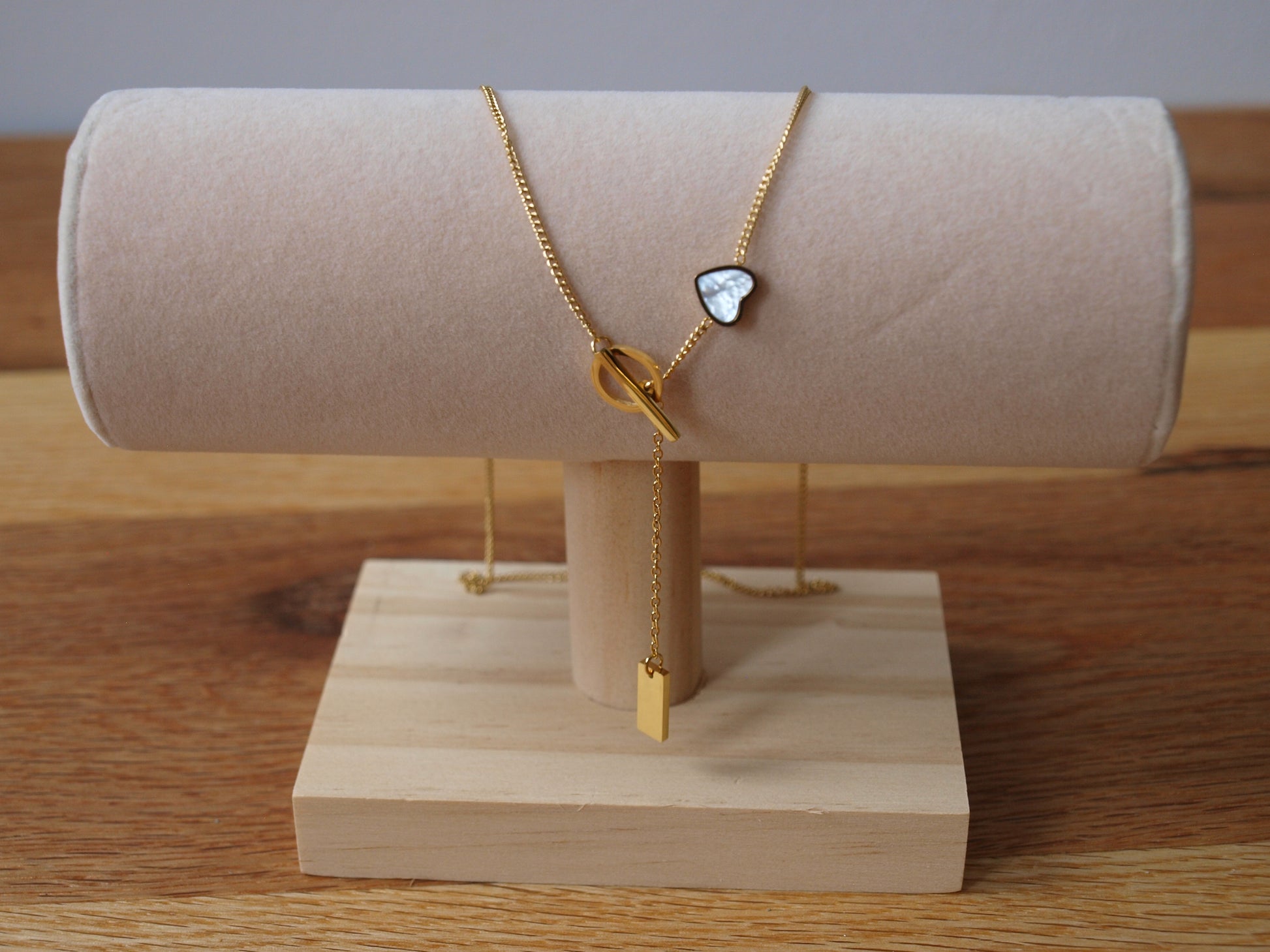 Diese ungewöhnliche Halskette wird Sie mit ihrem einzigartigen Design begeistern: Ein herzförmiger und ein plattenförmiger Anhänger werden durch einen ungewöhnlichen Verschluss verbunden und bilden ein unwiderstehliches Modeaccessoire. Verleihen Sie Ihrer Schmucksammlung ein wenig Verspieltheit und Glanz!
