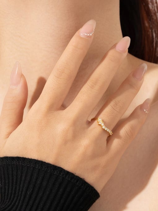 Ovaj prsten ističe se svojim jednostavnim, ali zavodljivim zakrivljenim dizajnom. Pozlata mu daje luksuzan sjaj, dok cirkoni dodaju blistavu iskru koja privlači poglede.
