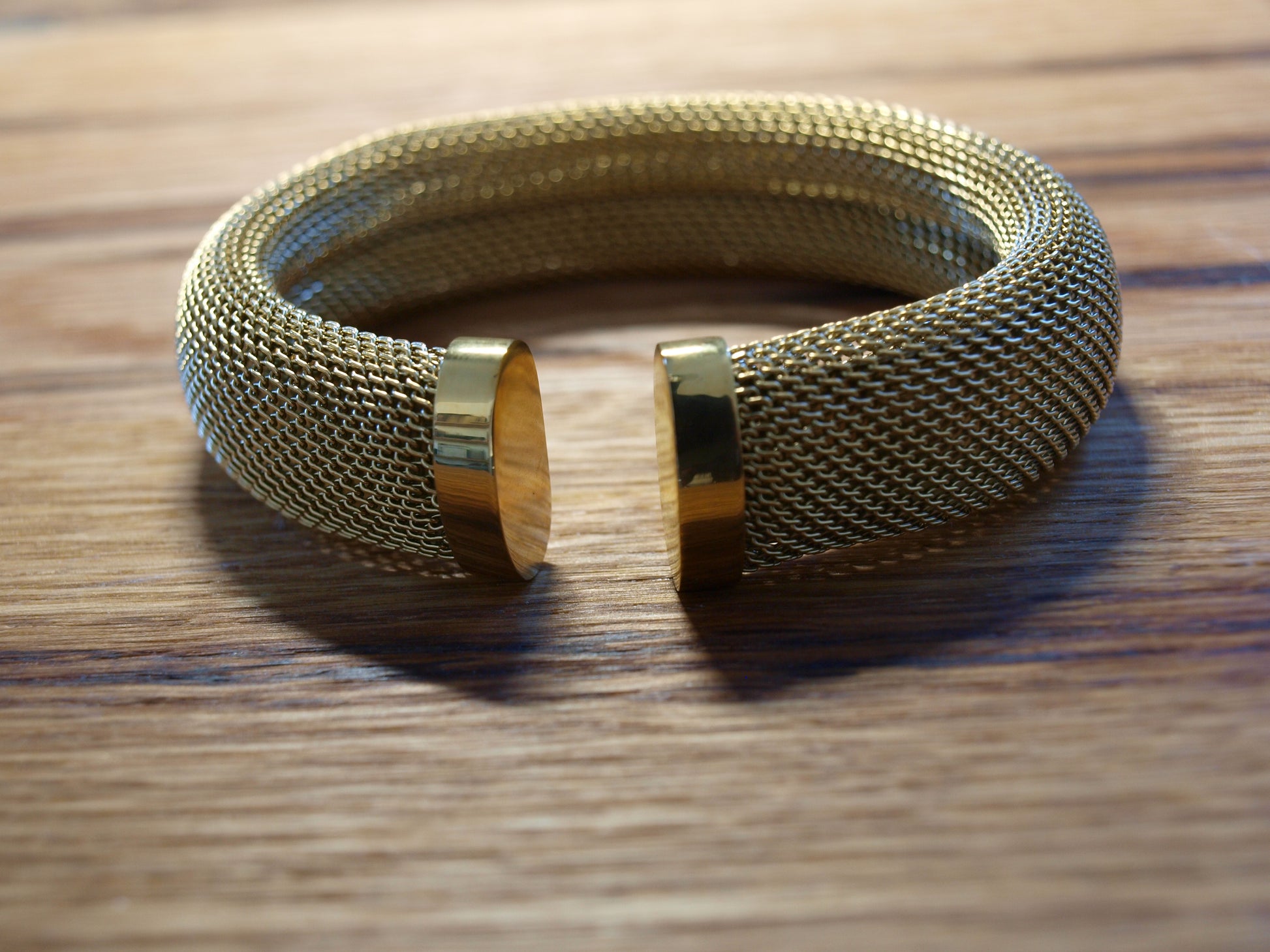 Ova narukvica inspirirana retro stilom ima fin, gust mrežasti dizajn s delikatnim zlatnim premazom. Njena jedinstvena tekstura i sjaj čine je odvažnim dodatkom koji privlači pažnju i dodaje dašak glamura svakom vašem danu.