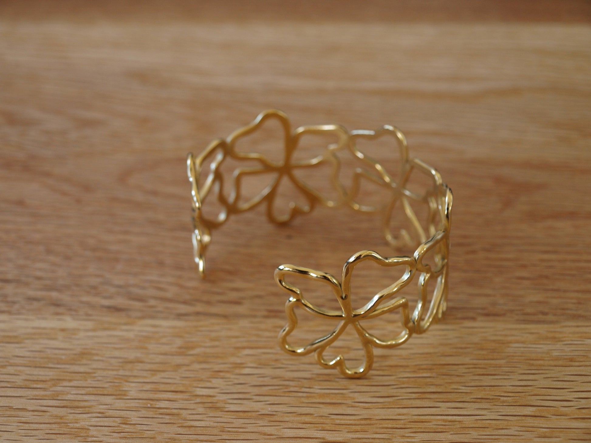 Osvježite svoj izgled s ovom jedinstvenom narukvicom koja spaja prozirne djeteline sa četiri lista u elegantnom, jednodijelnom dizajnu s finom pozlatom. Ovaj smjeli modni dodatak odlikuje se suptilnom lakoćom i luksuznim sjajem, savršen za izražavanje osobnog stila s neočekivanom dozom profinjenosti. Neka vam donosi sreću svaki dan.