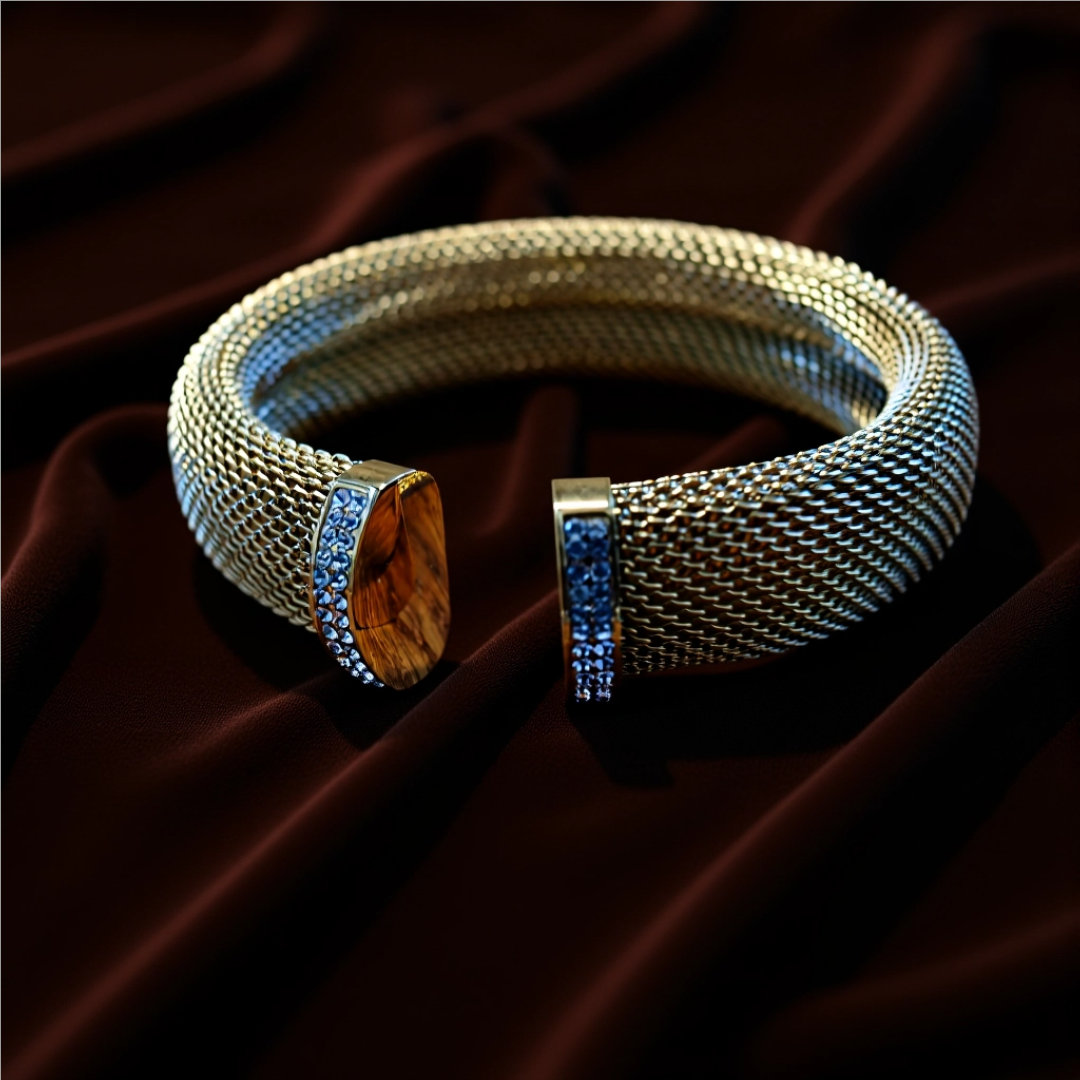 Ova retro narukvica spoj je sitne, guste i čvrste mreže te elegantne pozlate koja ističe njen snažan karakter. Završeci s blistavim cirkonima donose nježnu notu. Savršena za one koji vole posebne i upečatljive modne dodatke.