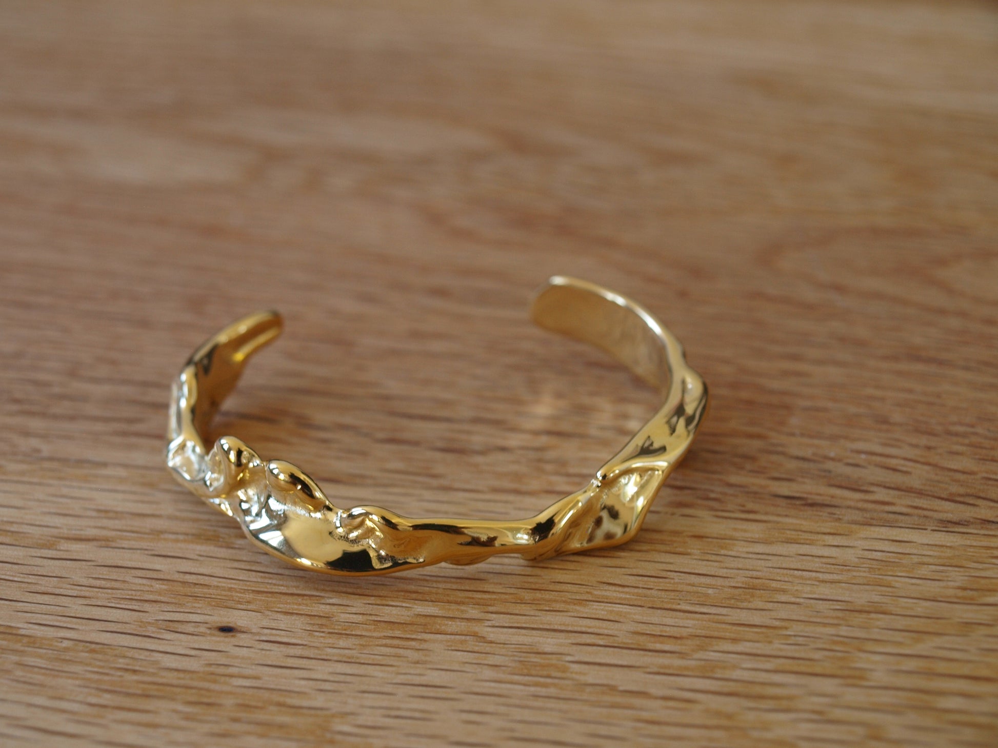 Ova jednostavna narukvica nesimetričnog oblika s pozlatom unosi nepredvidivost i odvažnost u vaš modni izričaj.