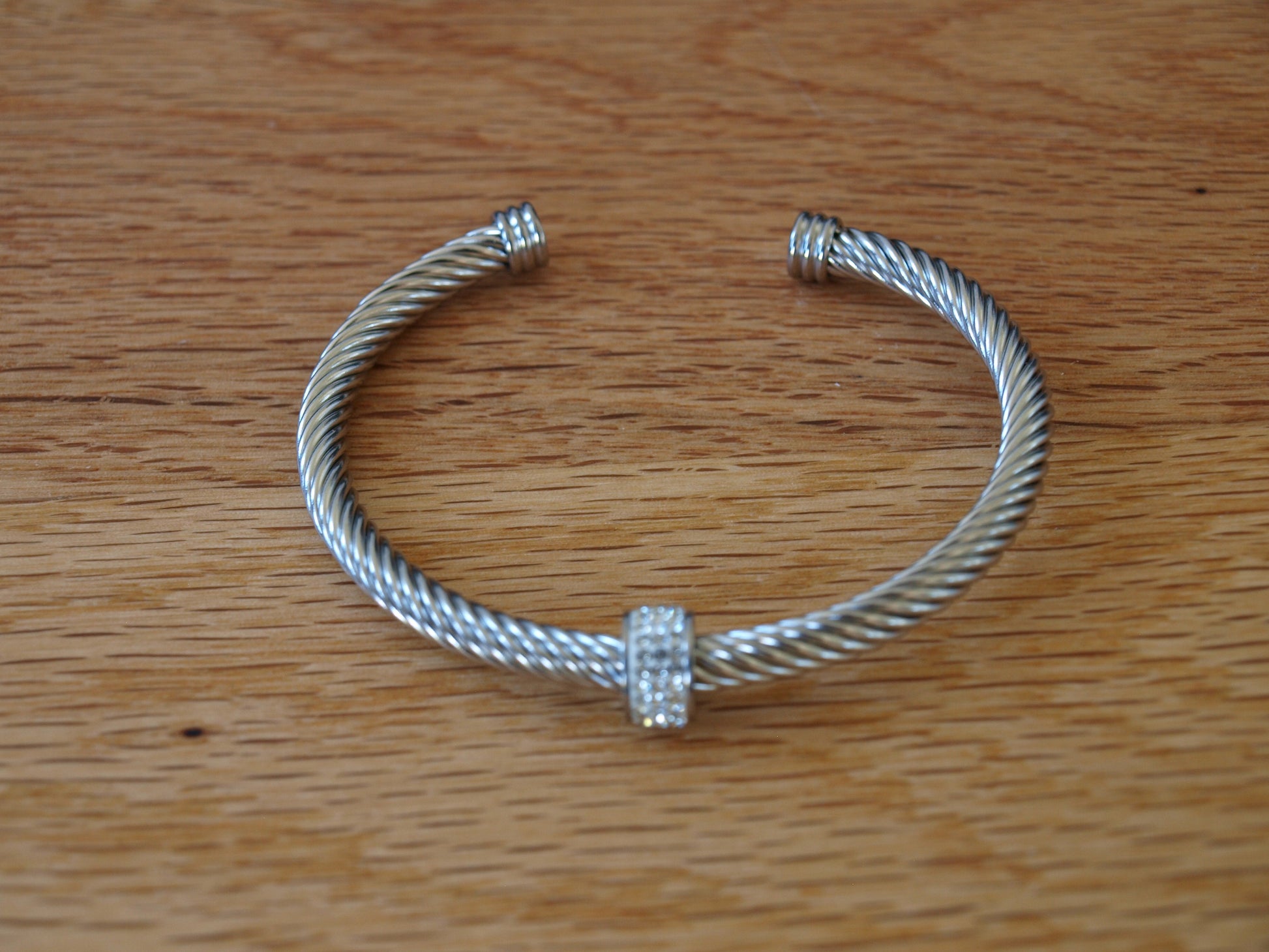 Ova srebrna narukvica hrabro spaja industrijski dizajn isprepletene žice sa sjajnim cirkonskim detaljem u središtu, stvarajući upečatljiv modni dodatak koji neće proći nezapaženo.