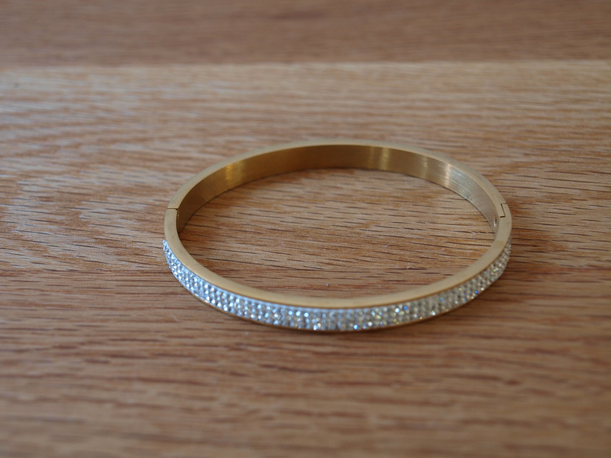 Ova kompaktna narukvica oduševljava raskošnim sjajem zahvaljujući pregrštu cirkona koji igraju svjetlost pod svakim kutom. Savršen izbor za posebne prilike, njena elegantna pozlata donosi dašak luksuza i profinjenosti koji ne prolazi nezapaženo.
