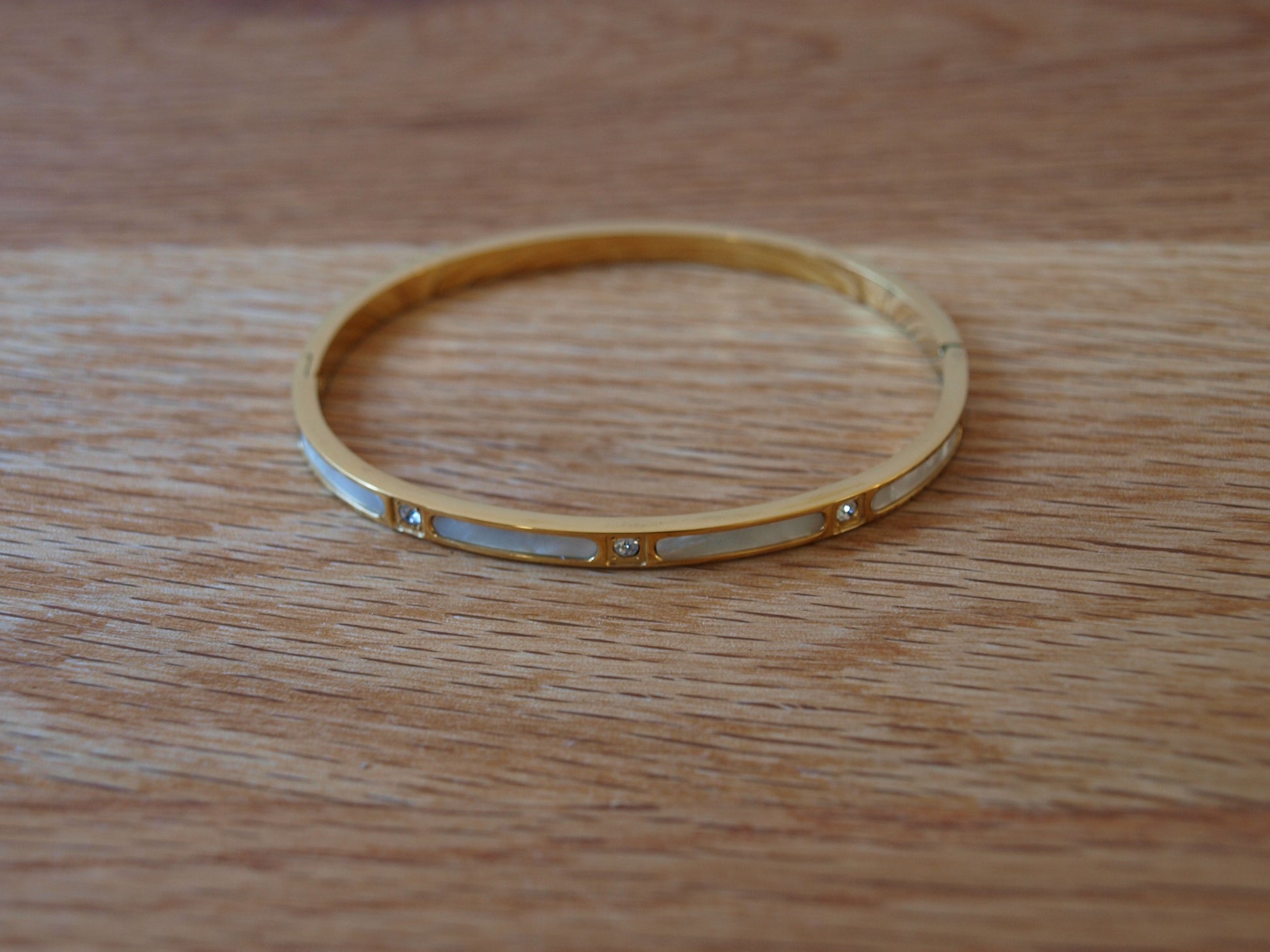 Ova kompaktna narukvica sofisticirano kombinira diskretnu eleganciju cirkona i blistavi sjaj pozlaćenih ploha od sedefa, čineći vaš stil neodoljivo privlačnim i smjelim izričajem. Savršena je za one koji žele suptilno, ali moćno osvježenje u svakom pokretu.