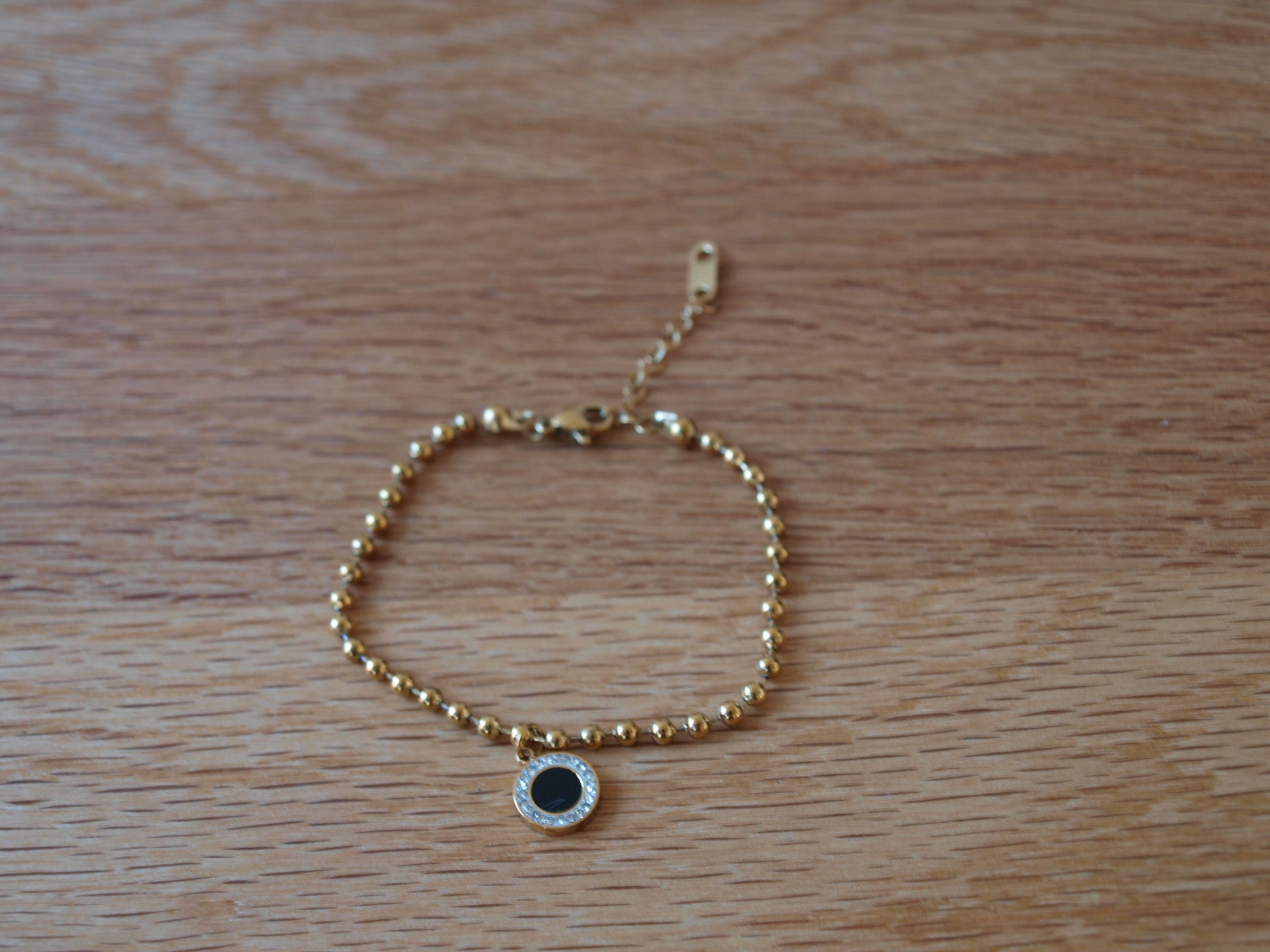Ova narukvica s elegantnim crnim središtem okruženim blistavim cirkonima donosi odvažan i sofisticiran izgled.