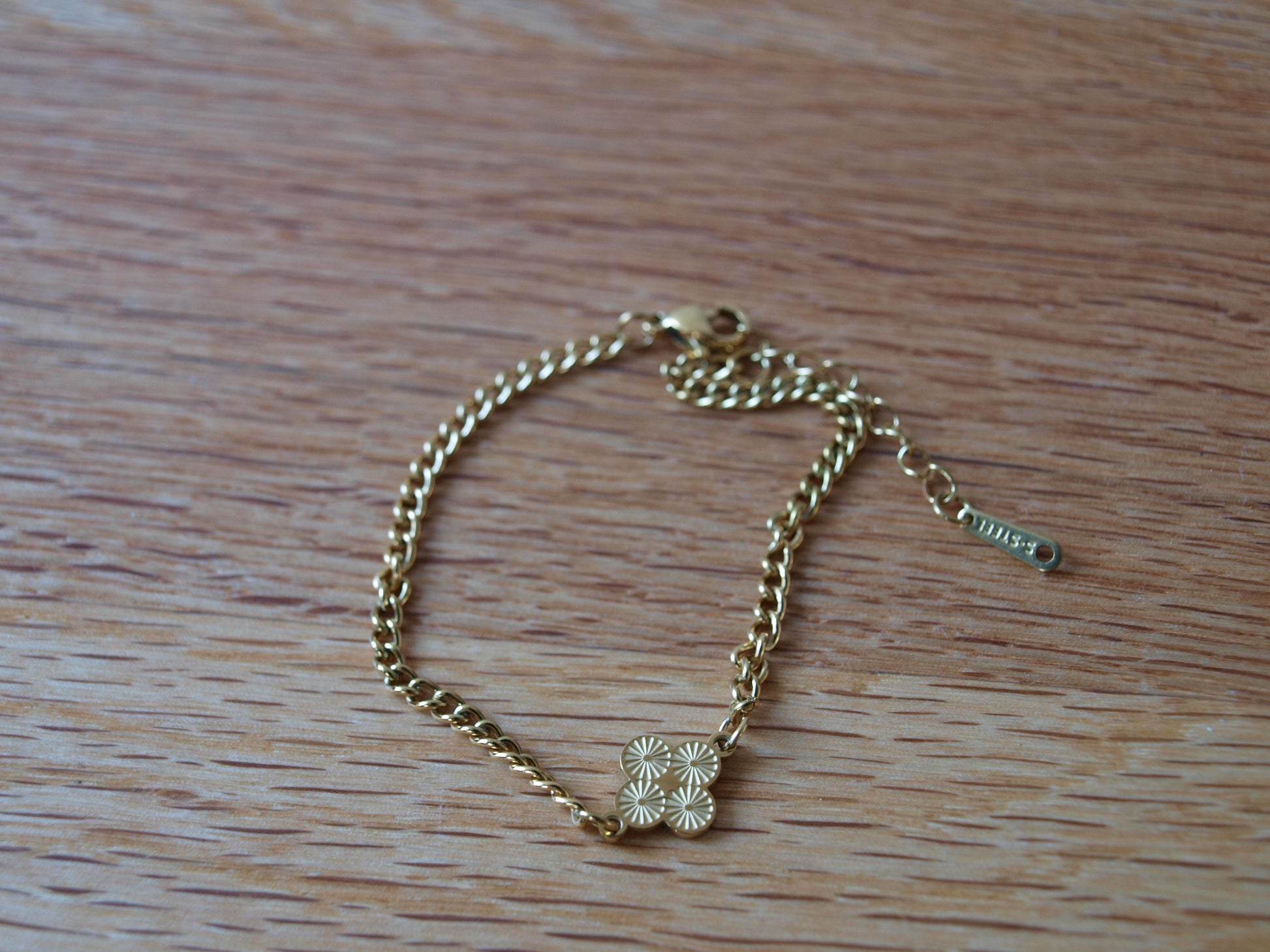 Ova jednostavna narukvica sadrži diskretnu zlatnu djetelinu u sredini, savršeno za one koji vole suptilne i diskretne detalje. Pozlata joj pruža elegantan sjaj koji će osvježiti svaki outfit i donijeti dozu vedrine u svakodnevicu. Dodajte malo sreće svom stilu s ovom neodoljivom narukvicom!