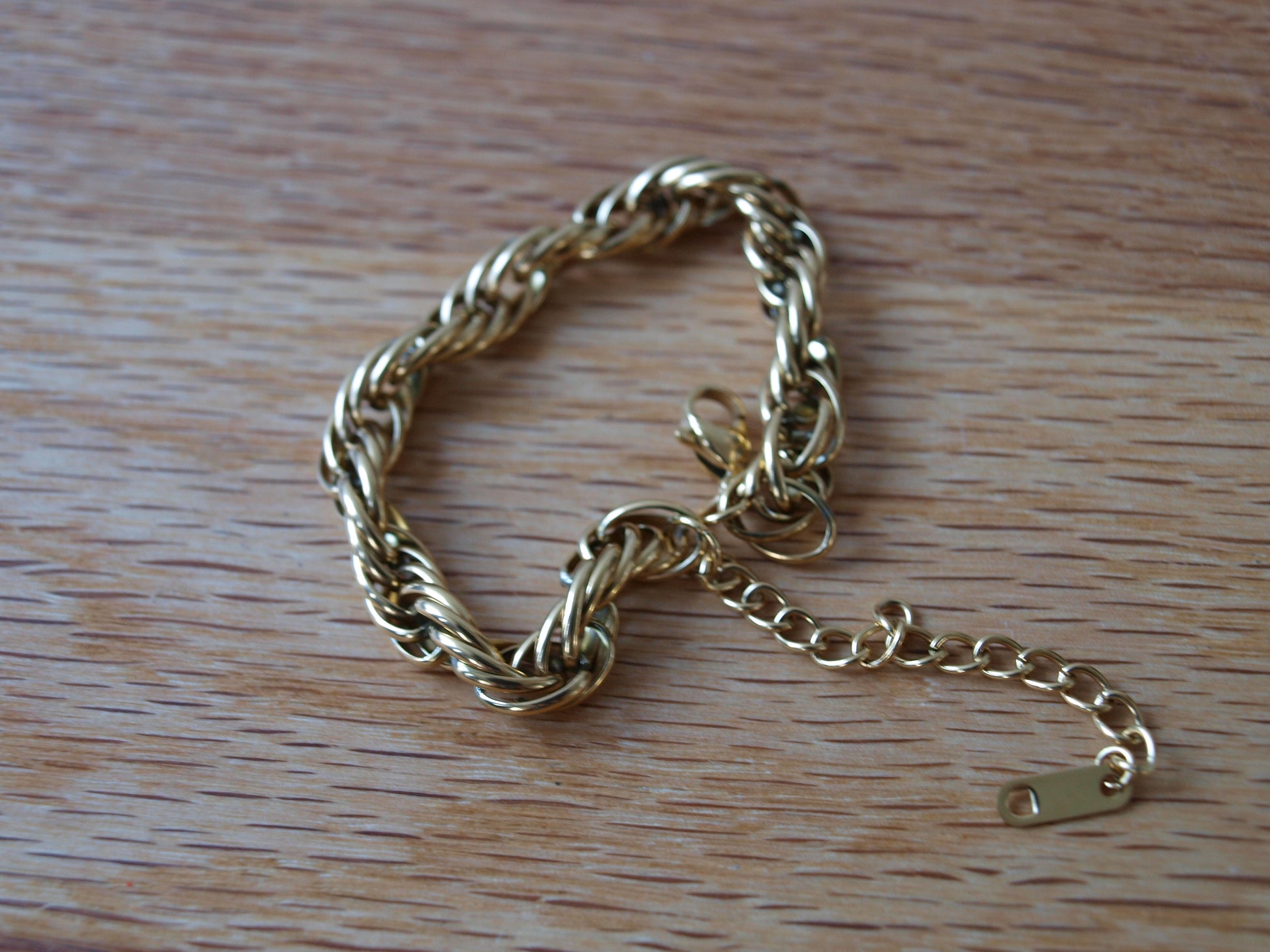 Ova jednostavna pozlaćena narukvica s neodoljivim pleterom unosi dašak igre u svaku odjevnu kombinaciju. Sjaj zlata i zanimljiv uzorak upotpunjuju vaš stil na zabavan i nepretenciozan način, savršeno za svaki dan i posebne prilike.
