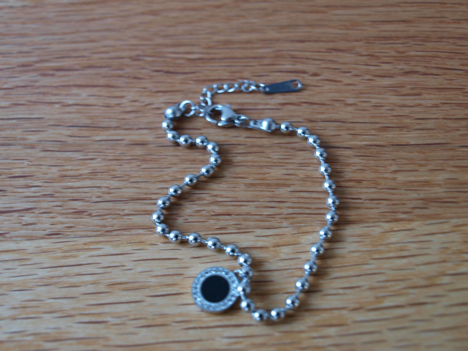 Ova jednostavna narukvica s crnim privjeskom u sredini okružena je sjajnim cirkonima koji daju dašak elegancije i zabave svakom outfitu. Savršena za svakodnevno nošenje ili kao mali detalj koji će privući poglede i razveseliti vaš stil. Dodajte malo šarma svojoj kolekciji s ovim razigranim modnim dodatkom!