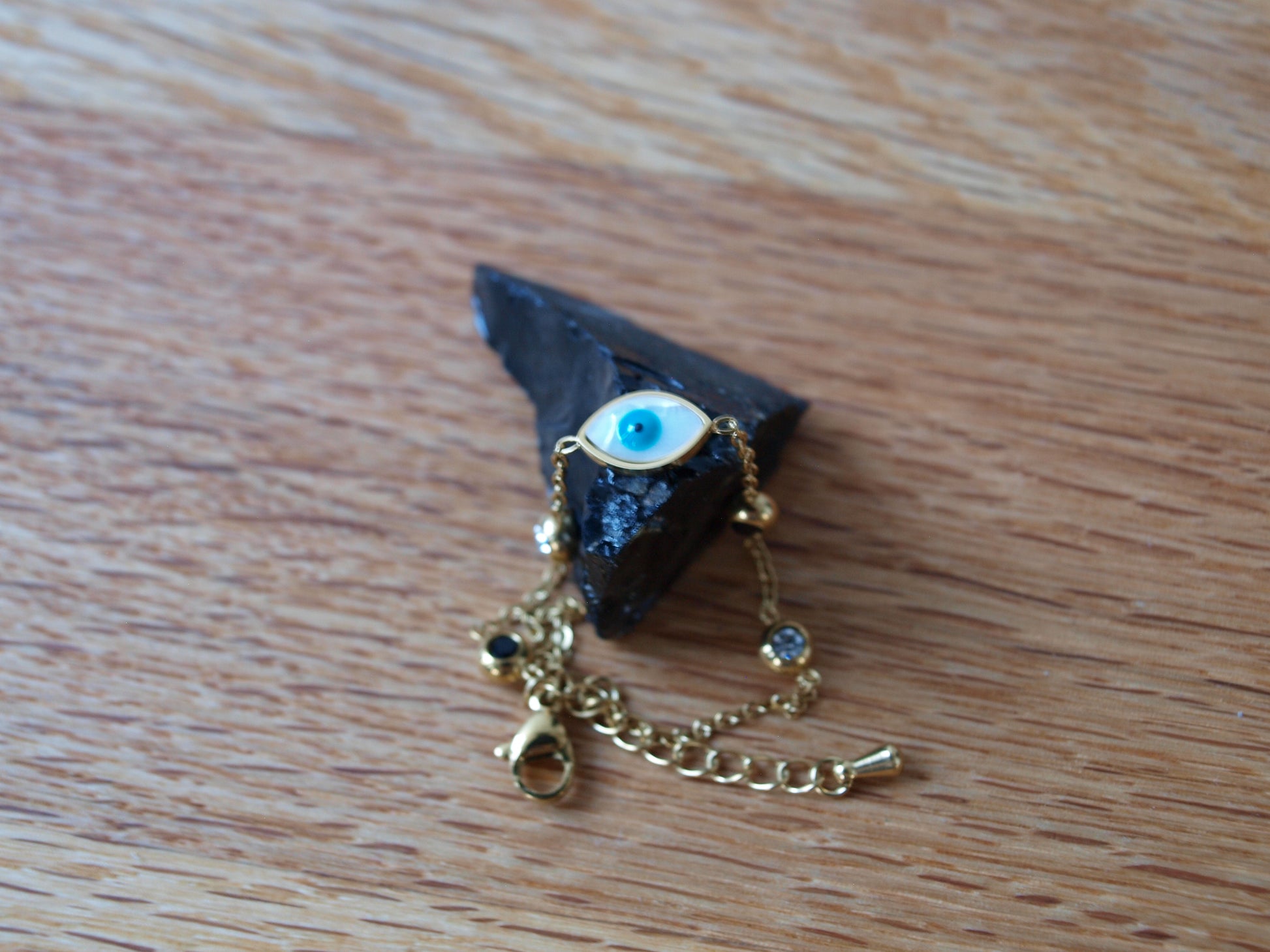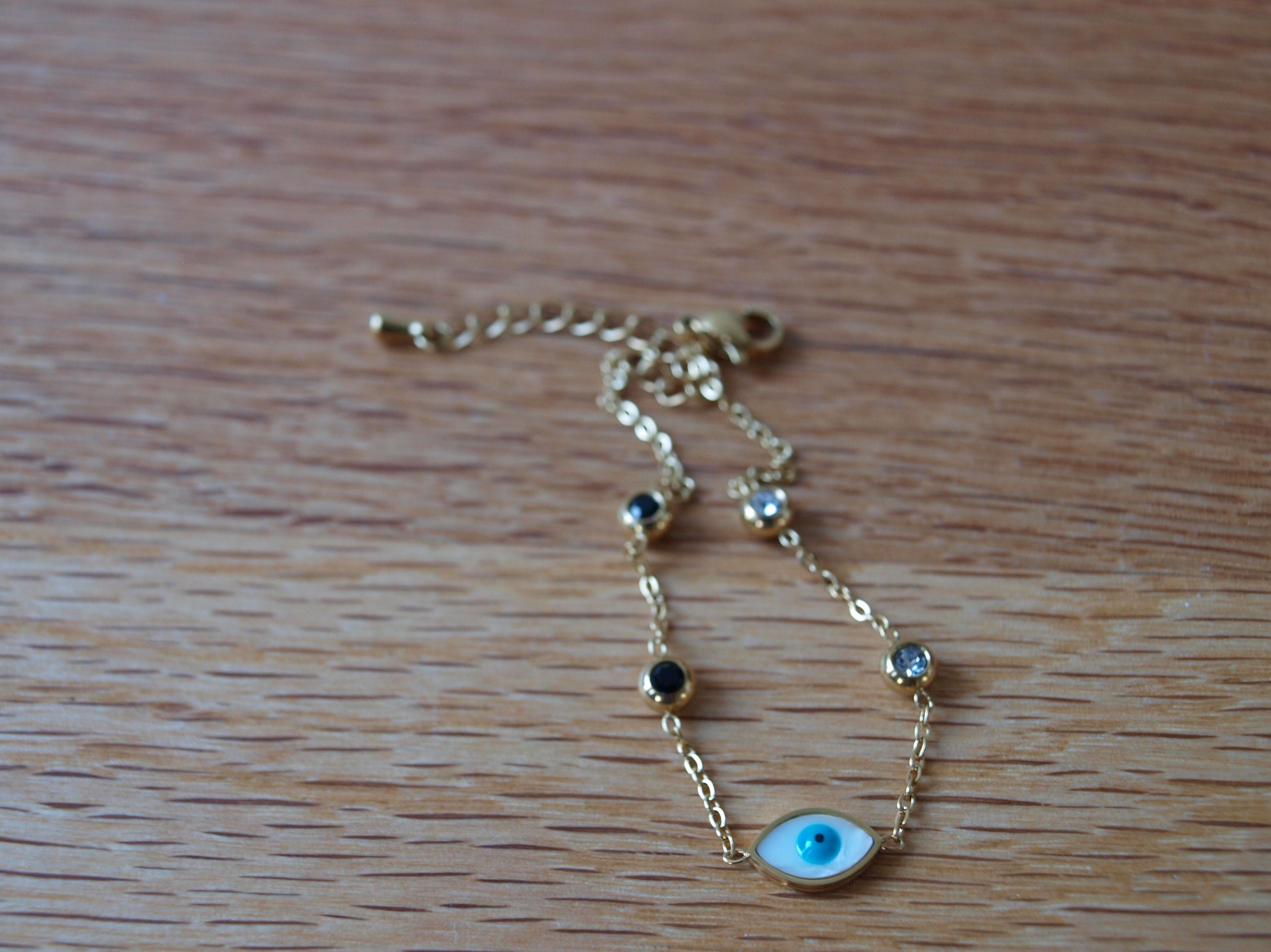 Ova narukvica s urokljivim okom u sredini očarat će svakog tko je ugleda! Četiri blistava cirkona koja ga okružuju daju joj dodatni šarm, a profinjena pozlata donosi dašak luksuza. Savršen detalj za igru s vašim stilom i privlačenje pažnje na najslađi mogući način.