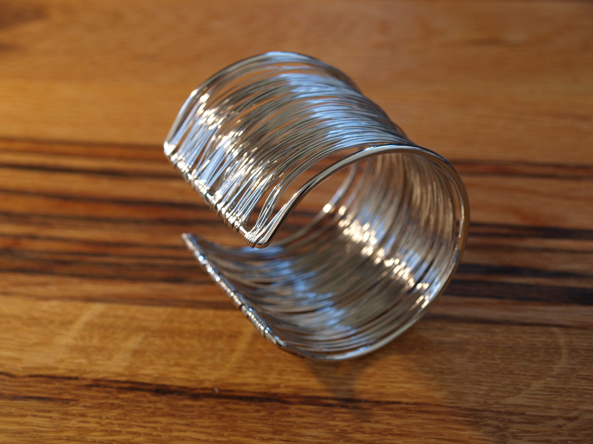 Ova narukvica u sjajnoj srebrnoj boji oduzima dah svojom strukturom koja izgleda kao da je utkala tisuću niti u jedan impresivan komad. Njezina smjela tekstura i raskošni odsjaj stvaraju odvažan modni dodatak koji ističe samopouzdanje i jedinstven stil.