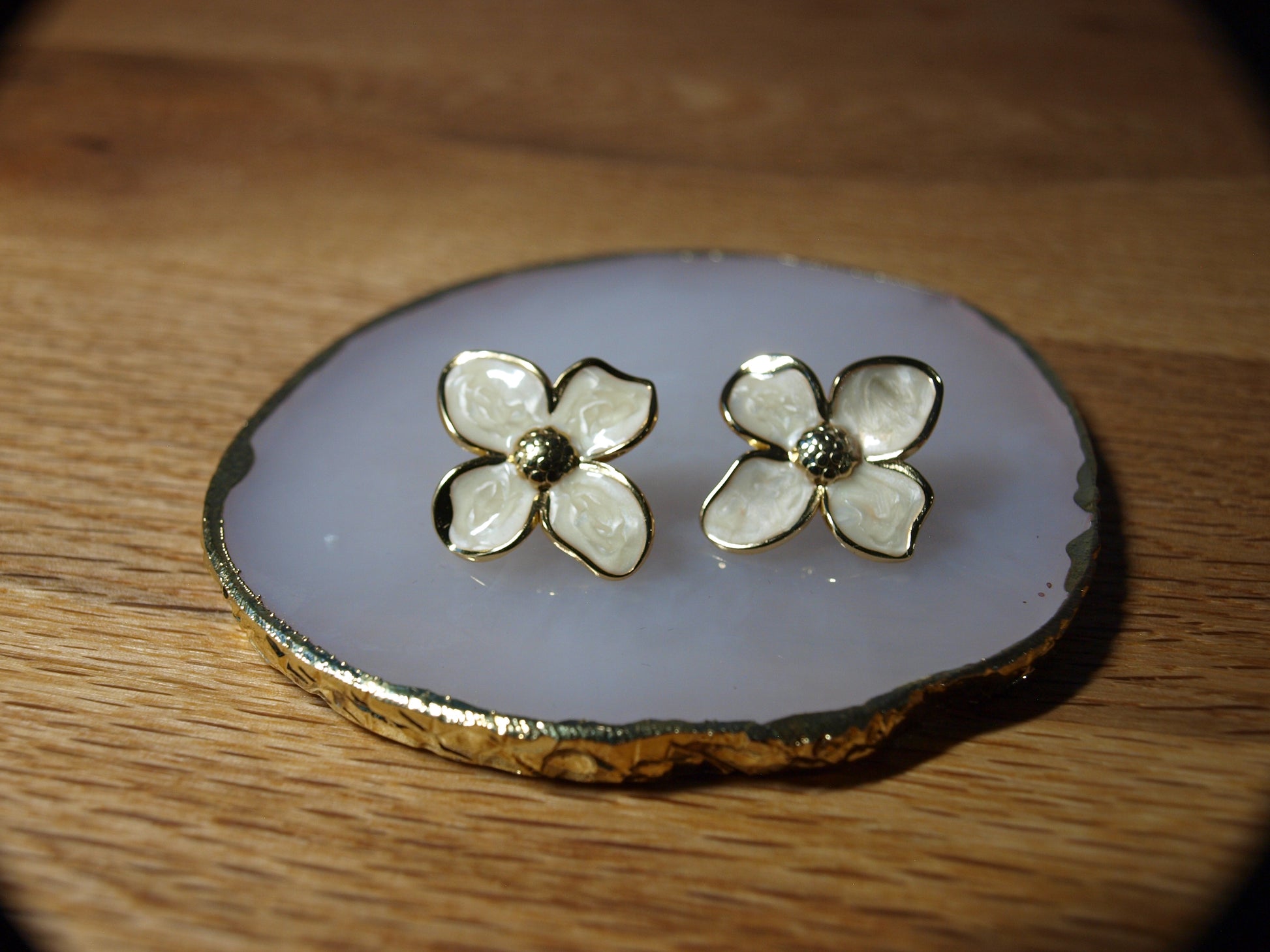 Ove naušnice s malim bijelim cvijetićima savršeno balansiraju između decentnog i upečatljivog izgleda. Dodajte šarmantan i svjež detalj vašem stilu koji će privlačiti poglede bez previše buke. Idealne su za svaku priliku kad želite zablistati na suptilan, ali neodoljiv način.