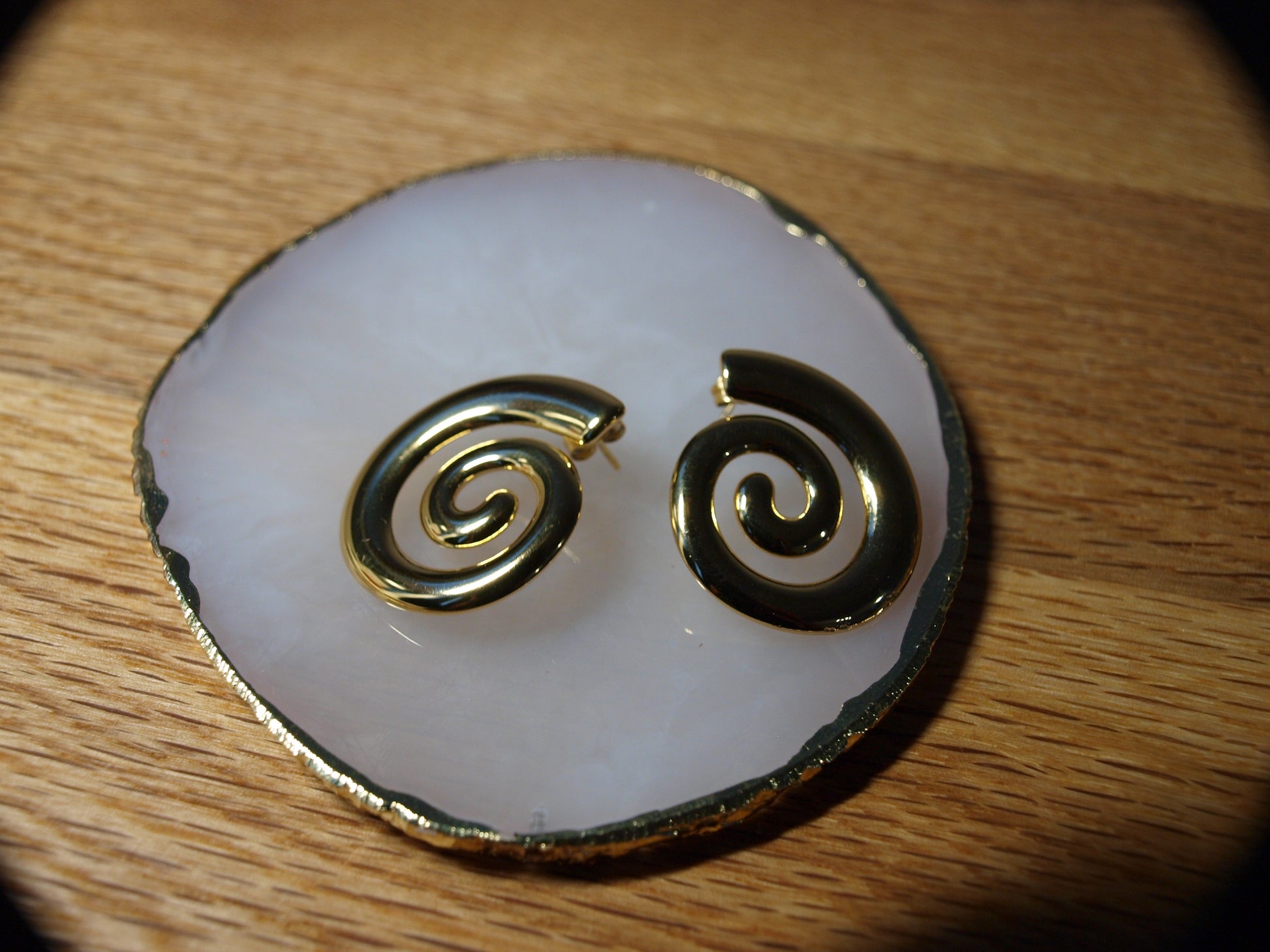 Dodajte dozu vragolaste elegancije svojim dnevnim kombinacijama s ovim pozlaćenim naušnicama u obliku spirale. Njihov zavodljivi oblik privlači poglede i unosi dinamičnu notu u svaki styling, savršene za one koji vole iskazati svoj jedinstveni stil na zabavan i sofisticiran način. Idealne za dodati blistav detalj svakom izgledu!