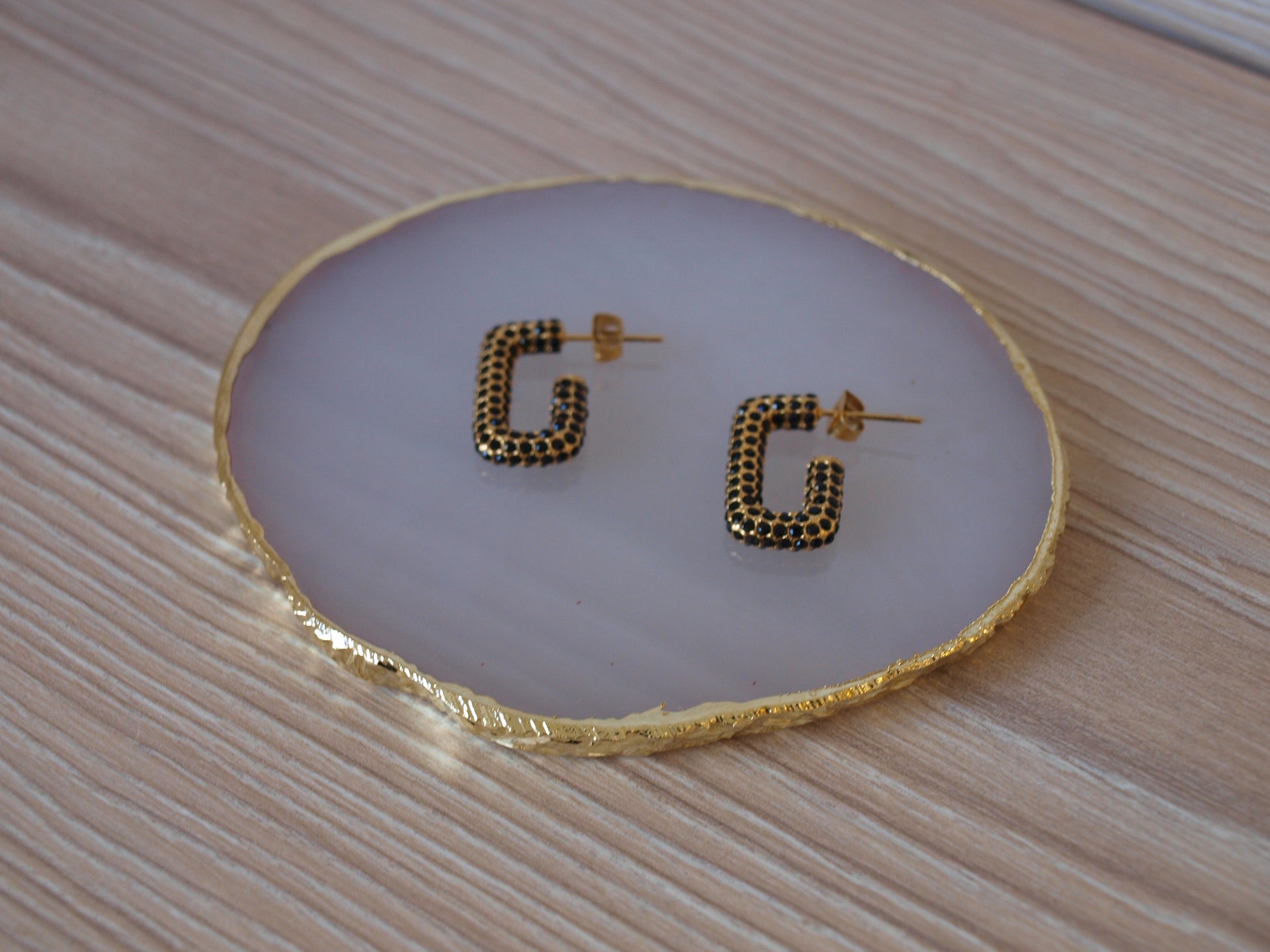 Ove naušnice sjajno spajaju zlatnu i crnu boju, čineći ih savršenim dodatkom za svaki dan, ali i za svečane prilike. Diskretne, a opet upečatljive, unijet će dozu elegancije i šarma u svaki vaš izgled. Zabavite se stiliziranjem i nosite ih s osmijehom!