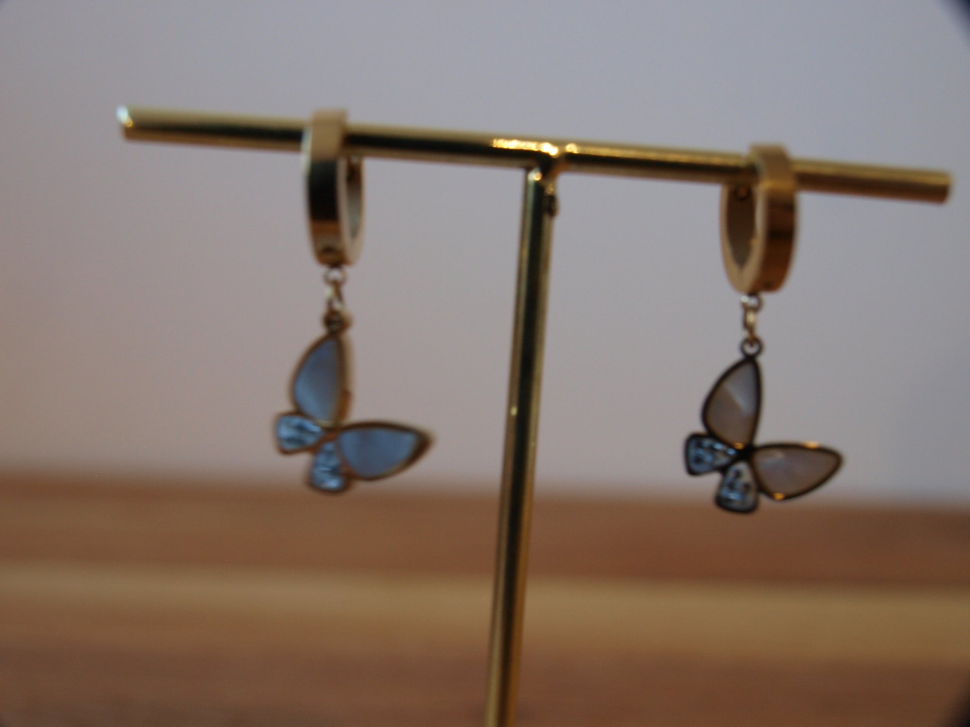Ove naušnice sa razigranim leptirićima obogaćene su suptilnom pozlatom koja svakodnevno donosi sjaj i radost vašem izgledu. Idealne su za dodavanje vedrog i svježeg detalja koji će vas pratiti kroz svaki dan s dozom igre i elegancije.