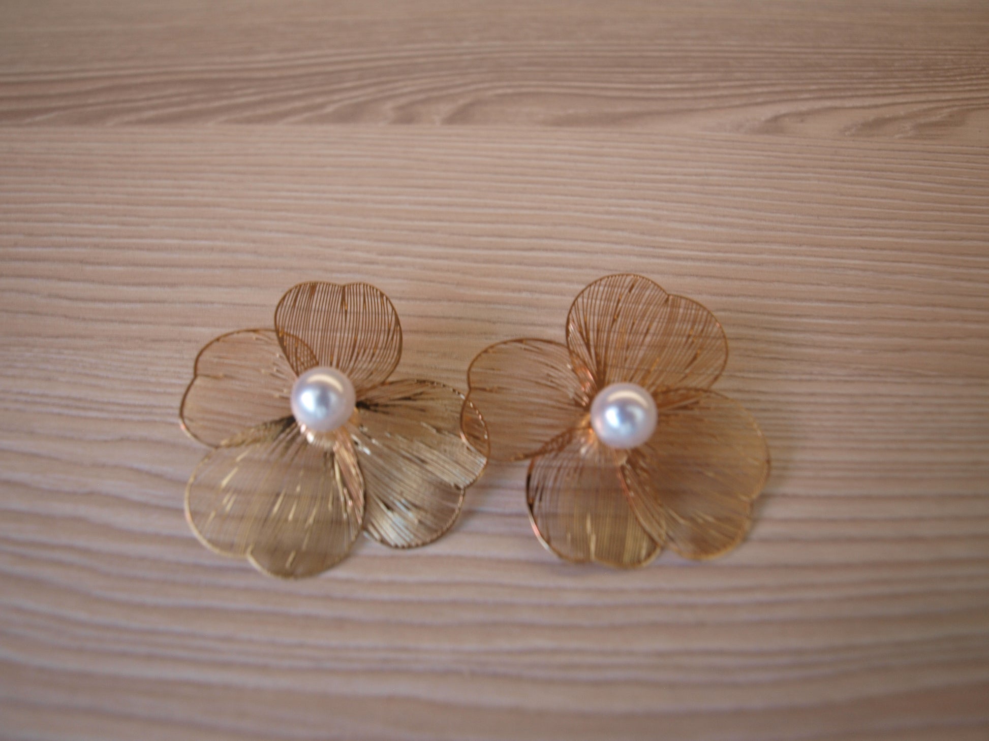 Ove naušnice donose dva nježna cvijeta u zlatnoj boji, svaki s biserom u sredini, kao da cvjetaju samo za vas. Savršene za igre svjetlosti i elegancije, dodaju dozu igre i šarma svakom vašem koraku!