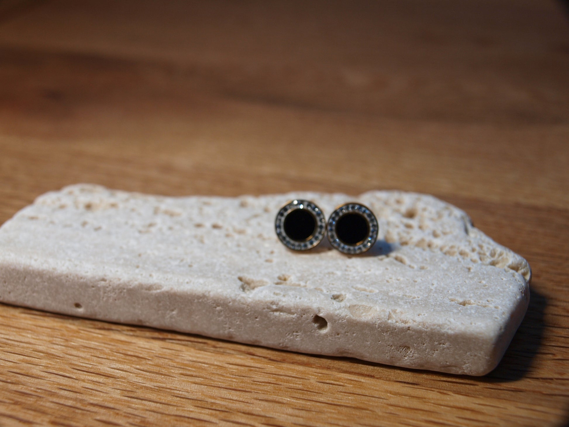 Ove male crne naušnice u obliku krugova, opletene sjajnim cirkonima u zlatu, donose dozu elegancije i razigranosti svakom izgledu. Savršene za one koji vole diskretnu, ali sjajnu notu u modnim dodacima!