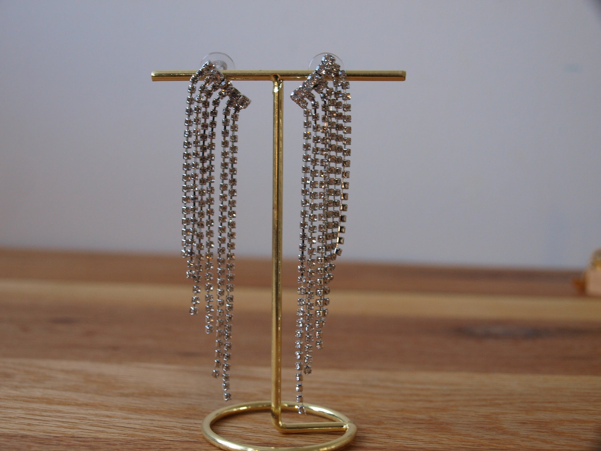 Dodajte dašak elegancije svakom vašem pokretu s ovim sjajnim visećim naušnicama. Dug i elegantan dizajn naglasit će vaš stil dok lepršaju i igraju svjetlošću u svakom trenutku. Savršene za one koji vole zavodljiv sjaj i željni su privlačiti poglede na zabavama ili svakodnevnim izlascima.