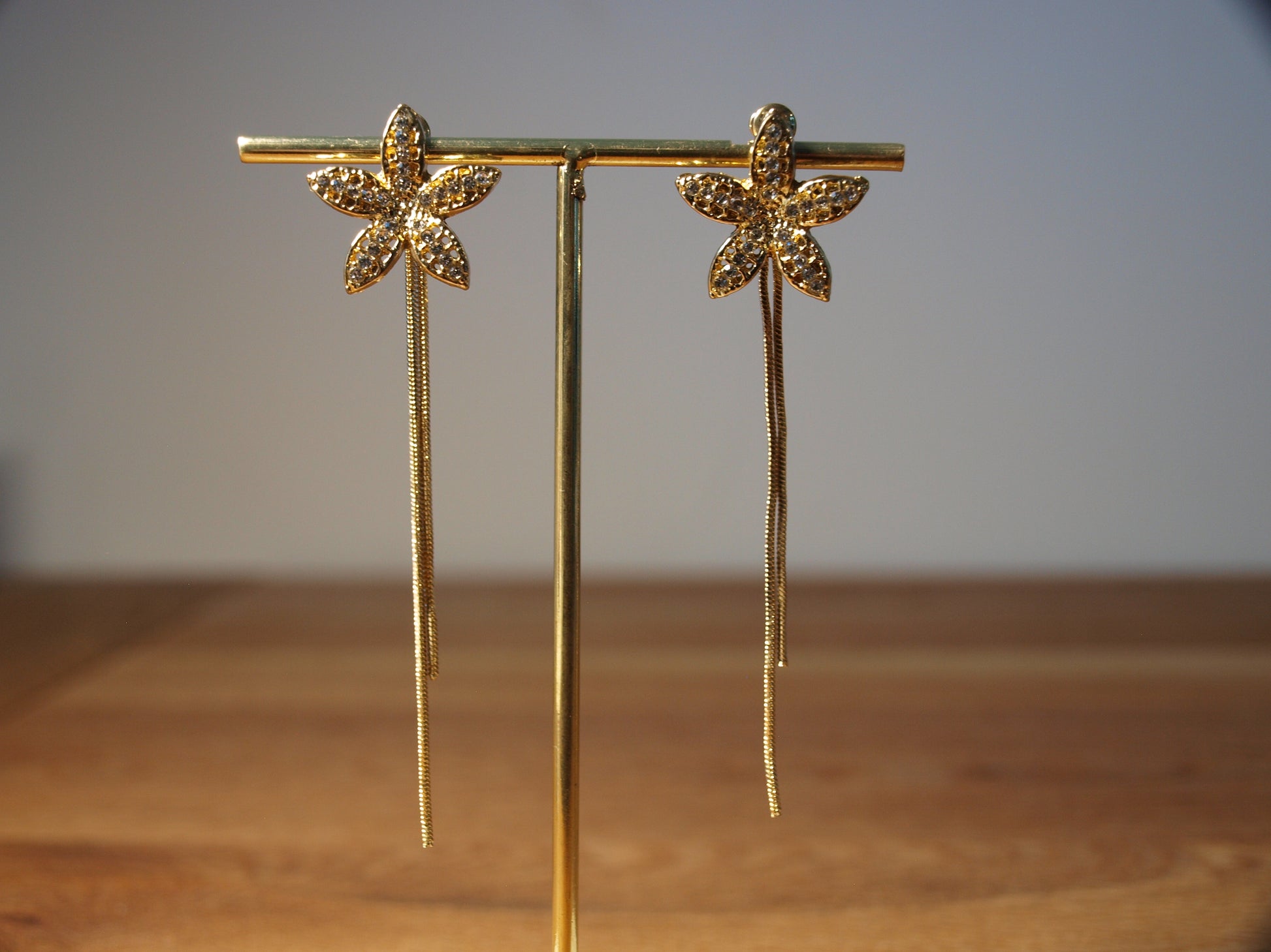 Ove naušnice donose zabavan spoj stila i elegancije s velikim cvijetom na vrhu, dok nježna peteljka visi ispod, stvarajući efekt laganog pokreta. Njihova pozlata dodaje toplinu i sjaj, savršeno naglašavajući svaki vaš korak. Idealne su za razigrane kombinacije koje nikad ne prolaze nezapaženo.