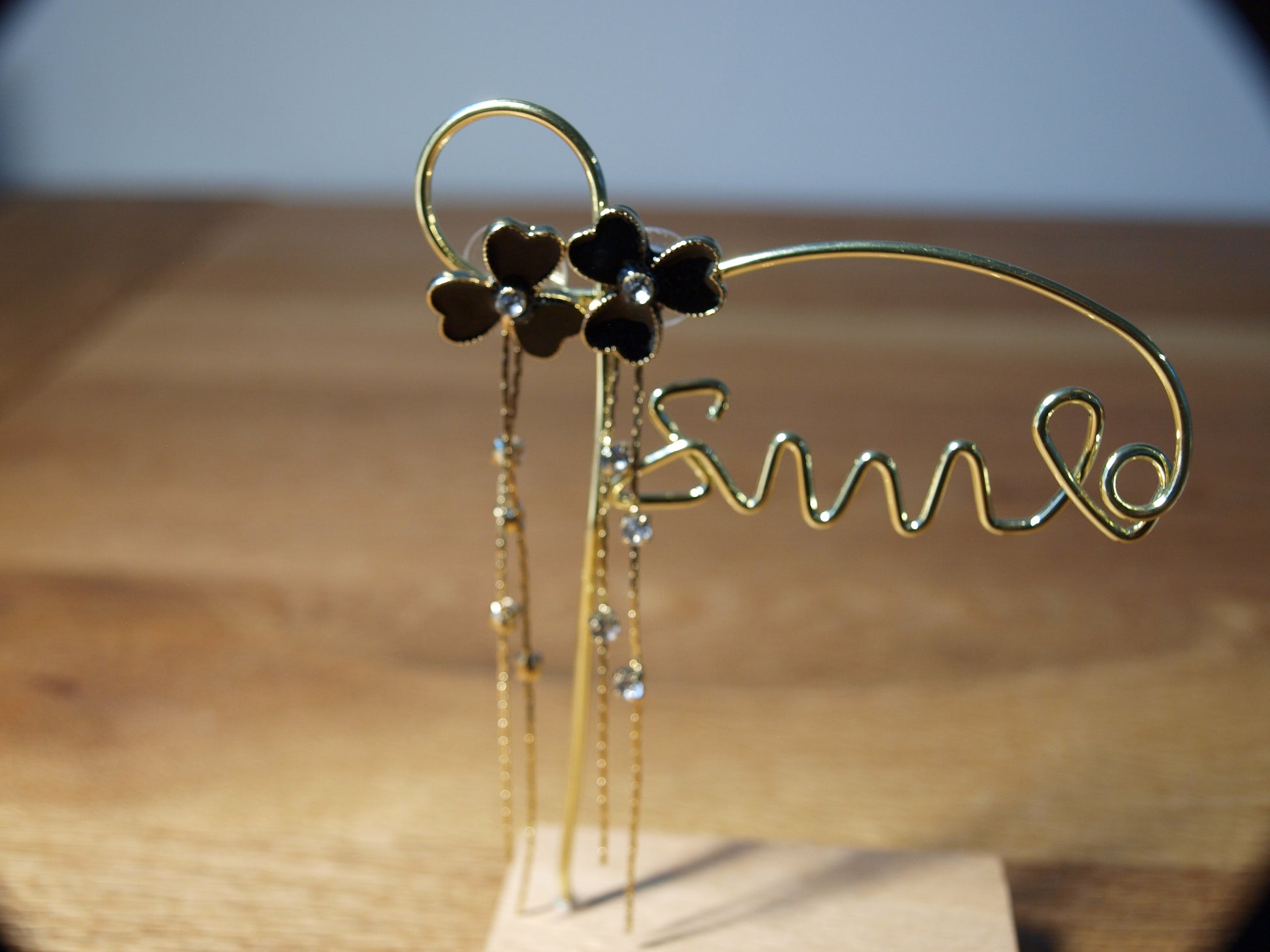 Ove šarmantne naušnice s crnim cvjetićem oduševljavaju detaljem spuštajuće peteljke ukrašene sitnim cirkonima u pozlati. Savršene su za one koji žele nositi malo igre i elegancije u svakom pokretu. Dodajte svježinu svojem stilu i zablistajte na poseban način!