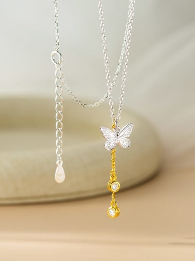 Ogrlica leptir donosi šarmantan spoj srebra i 18-karatnog pozlatnog sloja, ukrašena blistavim kristalom. Njezin leptirasti motiv unosi dozu igre i elegancije u svaki outfit, savršen za one koji vole istaknuti svoj stil s malo začina i svjetlucanja.