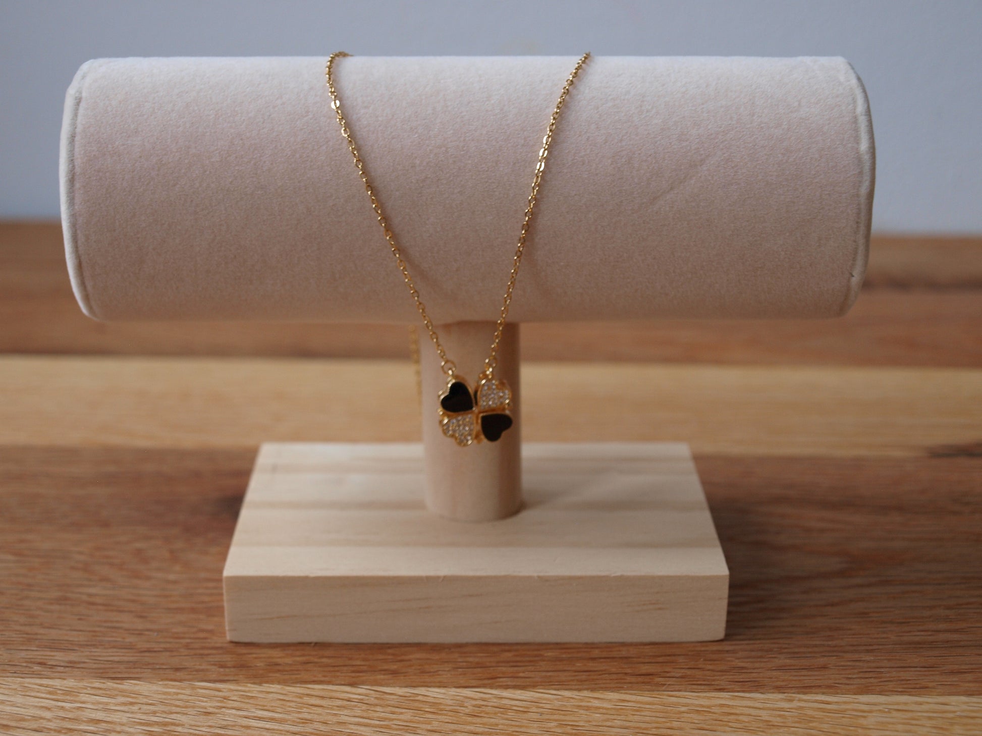 Dodaj malo sreće u svoj dan s ovom veselom crno-zlatnom ogrlicom! Privjesak u obliku djeteline sjaji kao pravi srećonoša koji će ti uvijek donijeti osmijeh i dobru energiju. Idealna za one koji vole zabavne i posebne modne dodatke. Nosi sreću sa stilom!