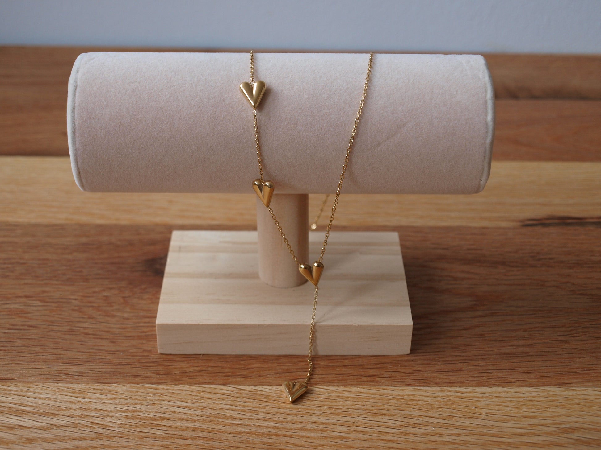 Ova jedinstvena ogrlica spaja dva niza u jedan, stvarajući šarmantan dizajn ukrašen privjescima u obliku srca. Savršena za one koji vole dodati dozu igre i romantike svom izgledu, ističe se kao veseli dodatak za svaki dan. Uživate li u stilu koji širi ljubav? Ova ogrlica čini baš to!