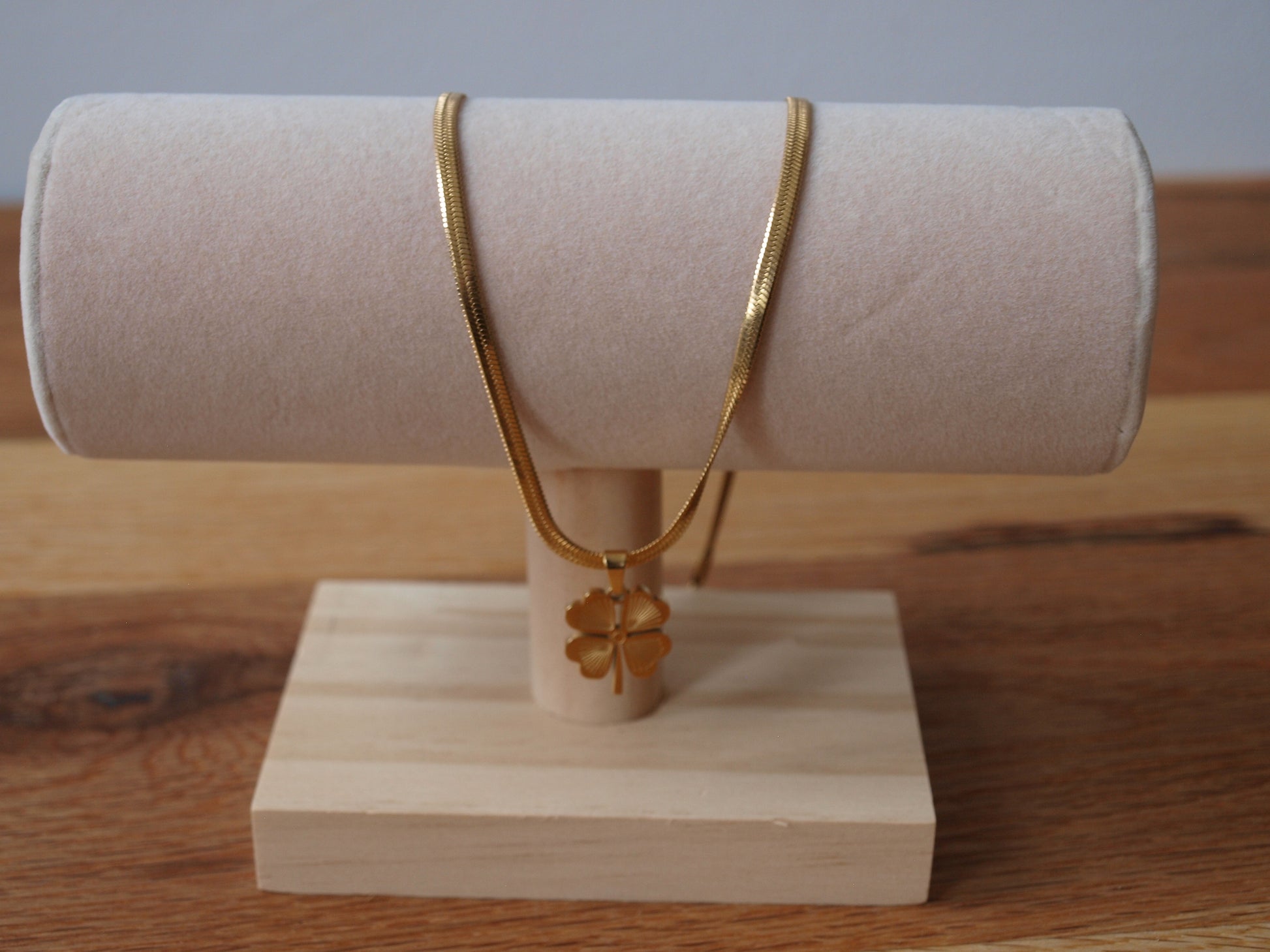 Otkrij sreću s ovom zlatnom ogrlicom koja nosi privjesak u obliku djeteline sa četiri lista! Sjajni detalji i zlatni sjaj čine ovu ogrlicu savršenim dodatkom za svakodnevne avanture i posebne trenutke. Neka te ova mala srećonoša prati gdje god kreneš!