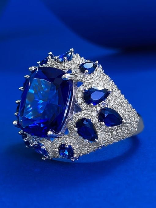 Ovaj prsten ističe se dominantnim plavim kamenom okruženim cirkonima, smještenim u bogato ukrašeno srebro. Njegov luksuzan dizajn savršen je izbor za posebne prilike kada želite ostaviti snažan dojam i pokazati jedinstveni stil.