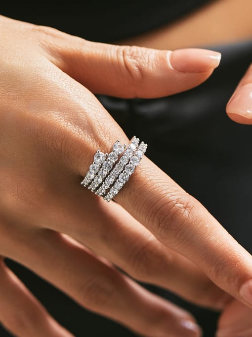 Ovaj prsten osvaja bogatim sjajem četiri asimetrična reda cirkona. Njegov luksuzan i upečatljiv dizajn savršen je za one koji vole istaknuti se hrabro i elegantno. Idealna kombinacija raskoši i sjaja za hrabre modne izbore.