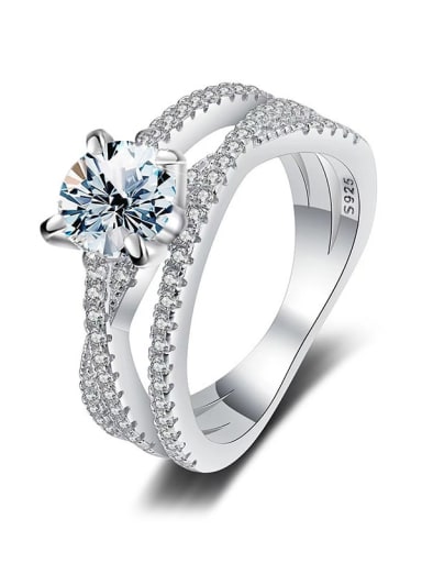 Ovaj prsten ističe se isprepletenim nizom cirkona koji stvaraju neodoljivu igru svjetlosti. Centralno smješten kamen donosi fokus i moć, dok srebro podcrtava njegov jedinstven, odvažan karakter.