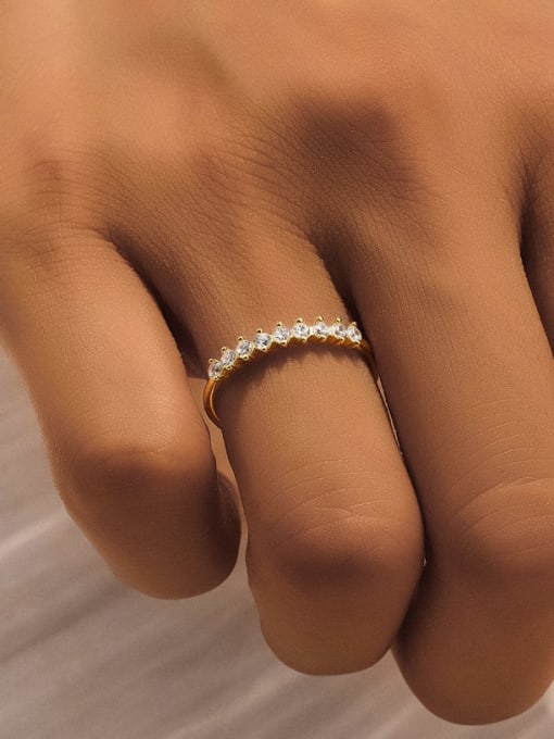Ovaj prsten ističe se svojim jednostavnim, ali smjelim dizajnom u obliku kruga, oplemenjen sjajnim cirkonima i prekriven finom pozlatom. Ovaj elegantan komad nakita savršen je izbor za one koji žele dodati odvažan, ali profinjen detalj svom stilu.
