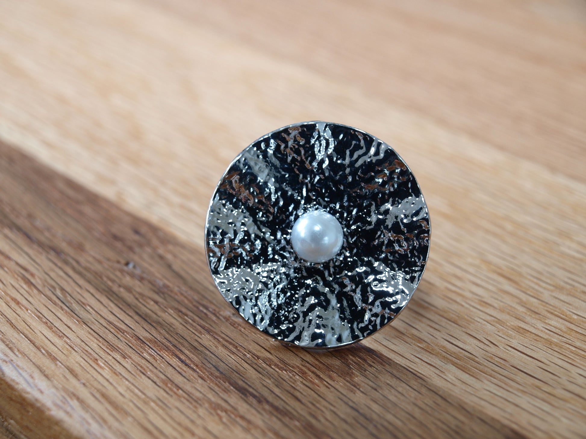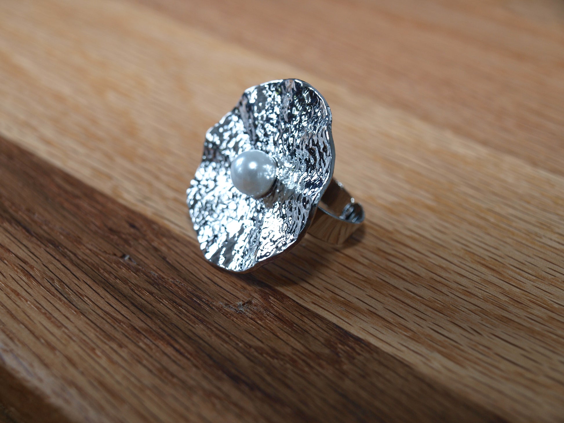 Ovaj veliki prsten odvažnog dizajna oduševljava detaljem cvijeta s biserom u sredini, stvarajući upečatljiv i elegantan izgled koji plijeni poglede. Savršen je za one koji žele nositi jedinstveni modni dodatak koji ističe osobnost i stil.