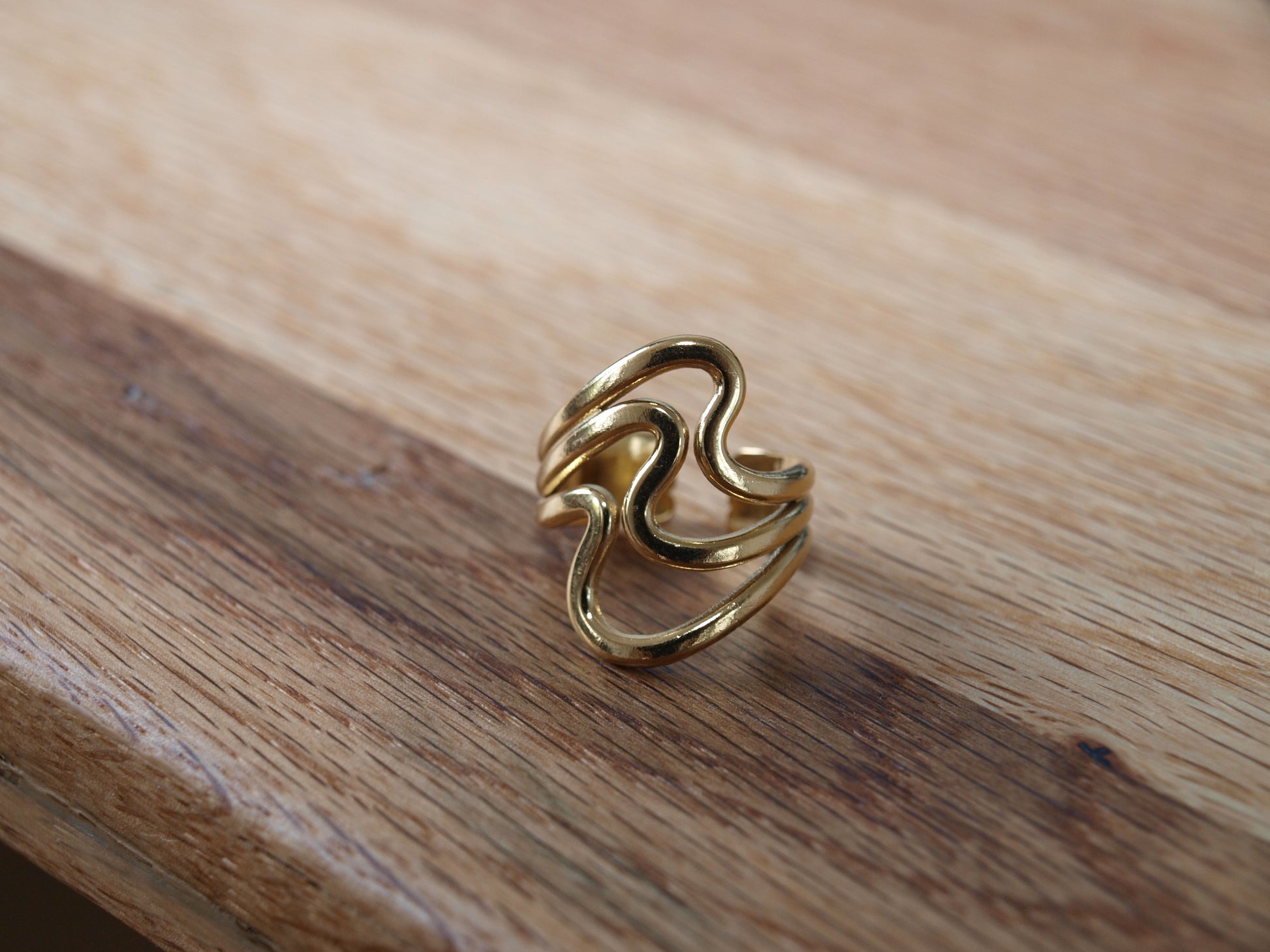 Ovaj prsten u tri vala oduzima dah svojom asimetričnom konstrukcijom i finom pozlatom. Njegov neobičan i hrabar dizajn naglašava individualnost, savršen za one koji žele istaknuti svoj jedinstveni stil. Izrađen za one koji se ne boje biti drugačiji.