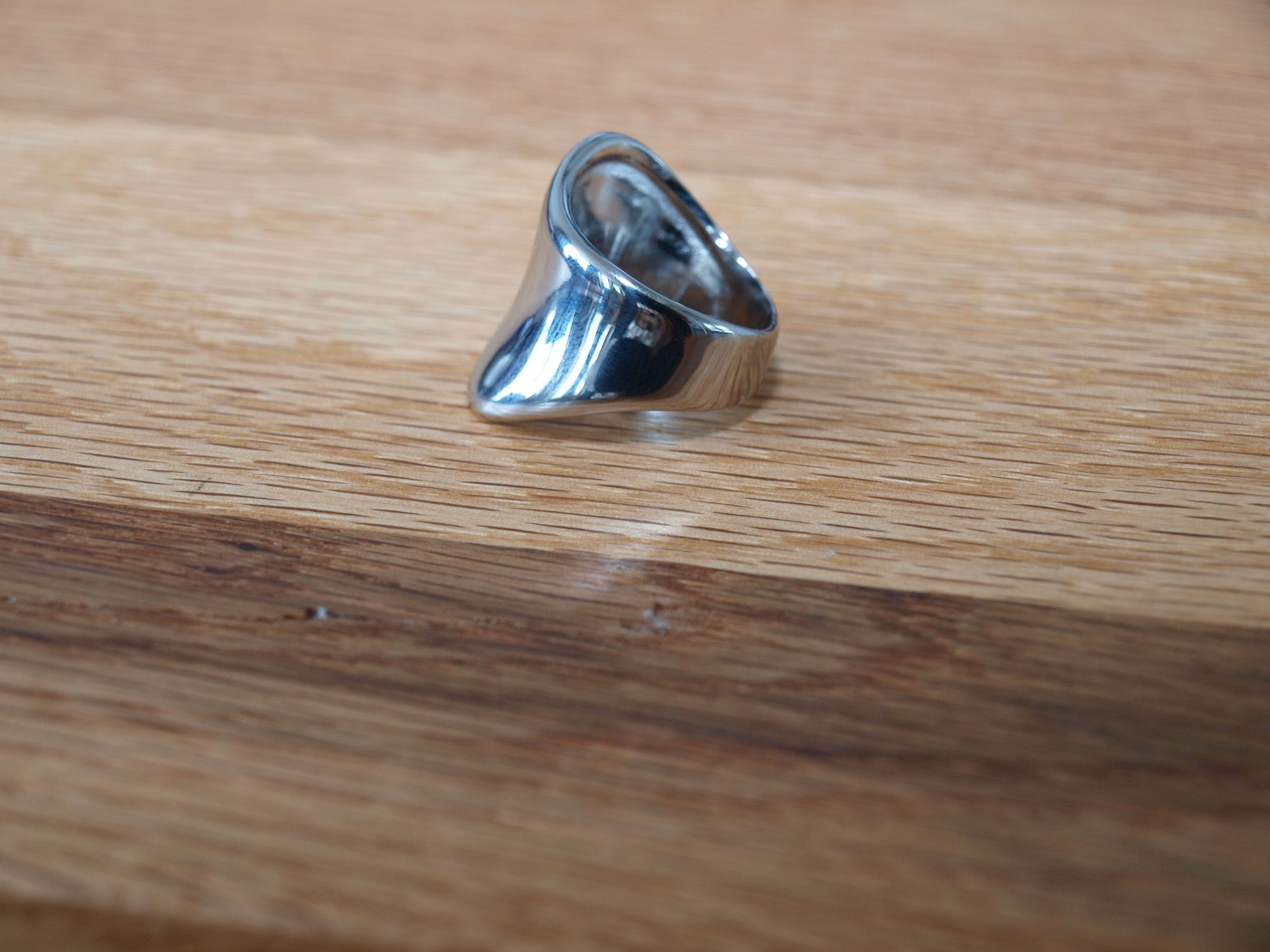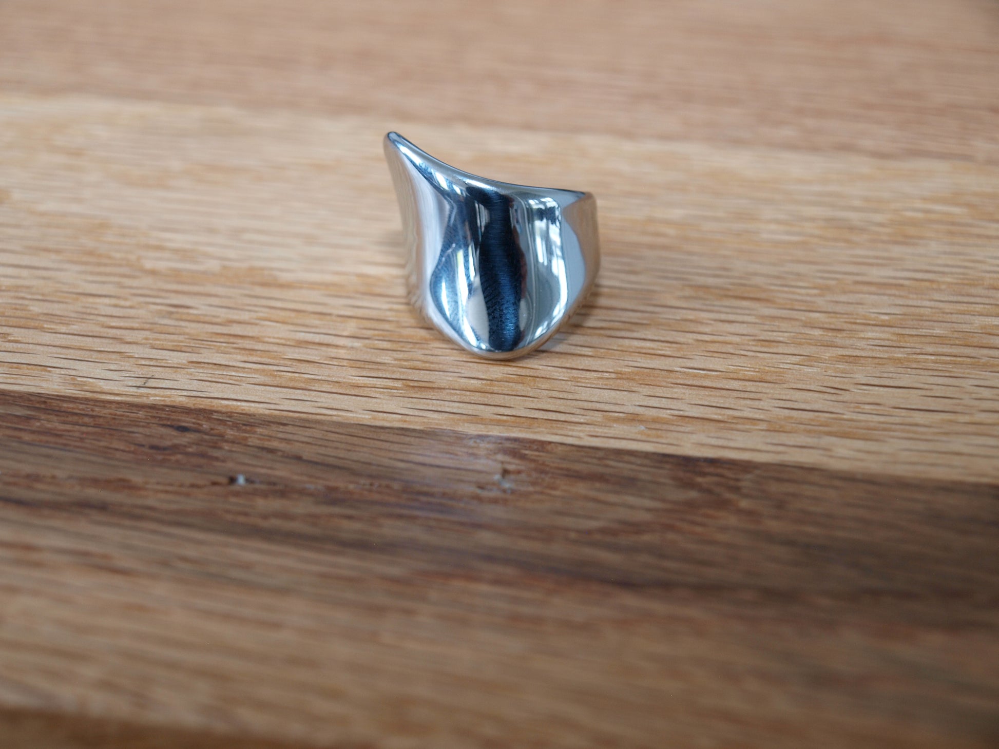 Ovaj asimetrični prsten izrađen je od jednog komada, što mu daje jedinstvenu i sirovu snagu. Njegov smjeli dizajn ističe se neočekivanim oblicima koji privlače poglede i odaju dojam autentičnosti. Savršen je izbor za one koji se ne boje pokazati svoj neobičan stil i hrabrost u modi.