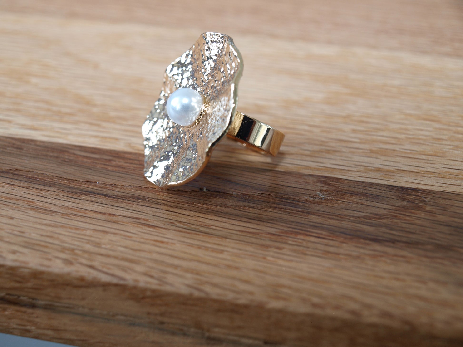 Ovaj prsten s jedinstvenim biserom u sredini oduševljava svojom smjelošću i elegancijom. Dizajniran kao cvijet, simbolizira posebne trenutke i neponovljivu ljepotu.