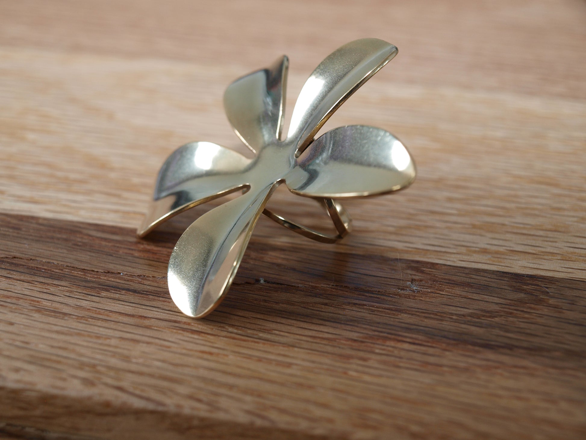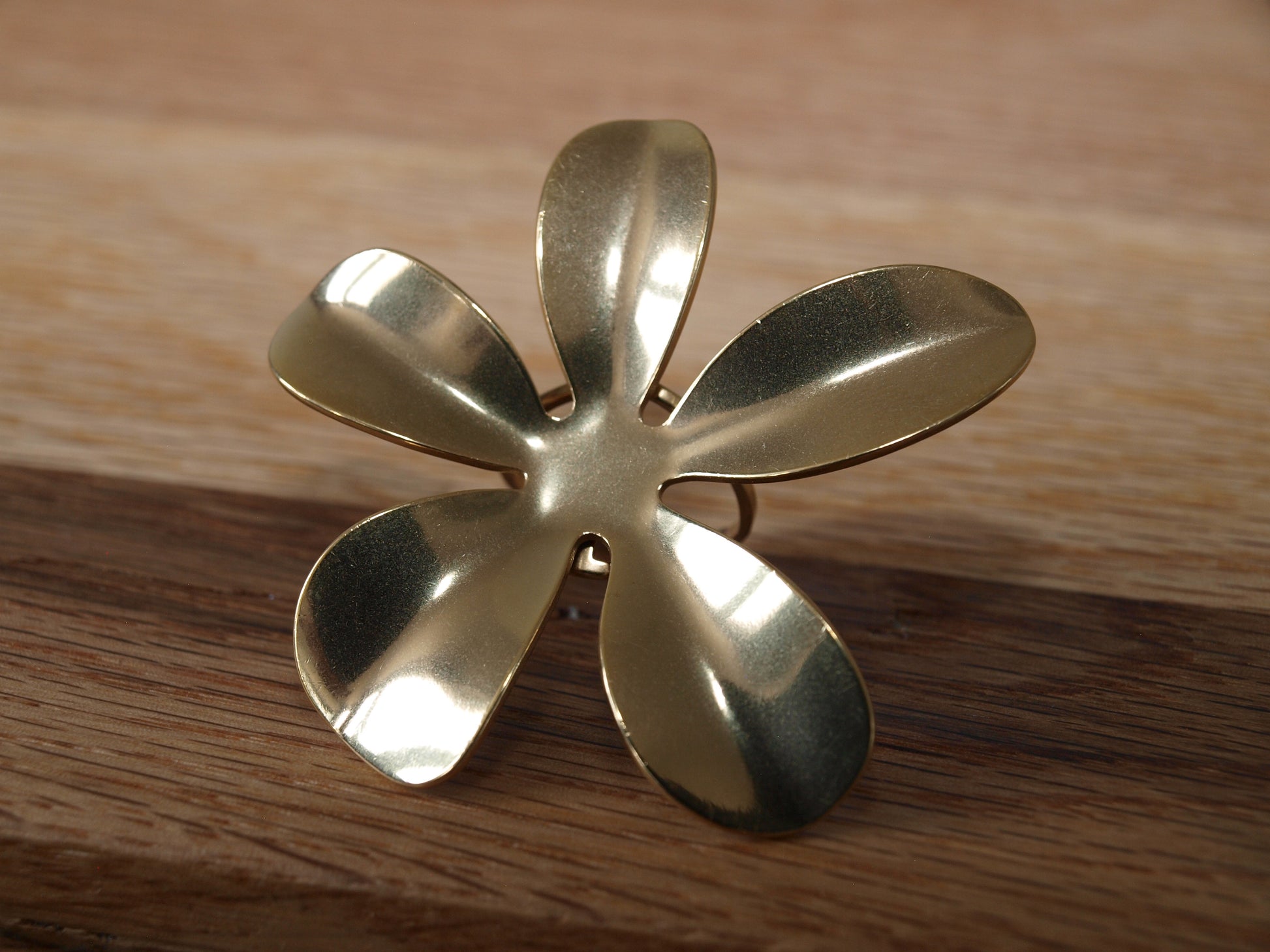 Otkrijte snažan izričaj stila sa ovim prstenom, ukrašenim impresivnim velikim cvijetom u pozlati. Njegov hrabar dizajn privlači poglede i naglašava vašu jedinstvenu osobnost, idealan za one koji ne pristaju na prosjek. Dodajte ovom komadu dozu luksuza i samopouzdanja vašem izgledu.