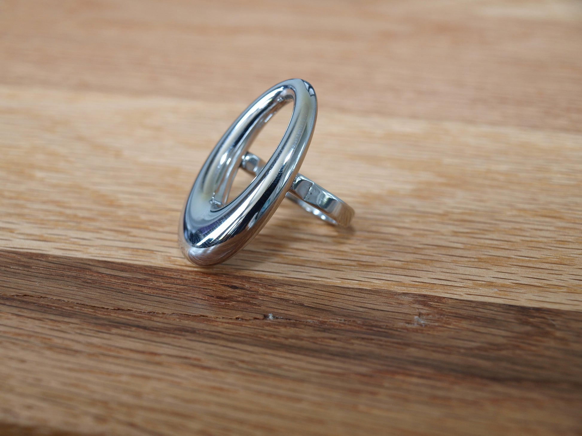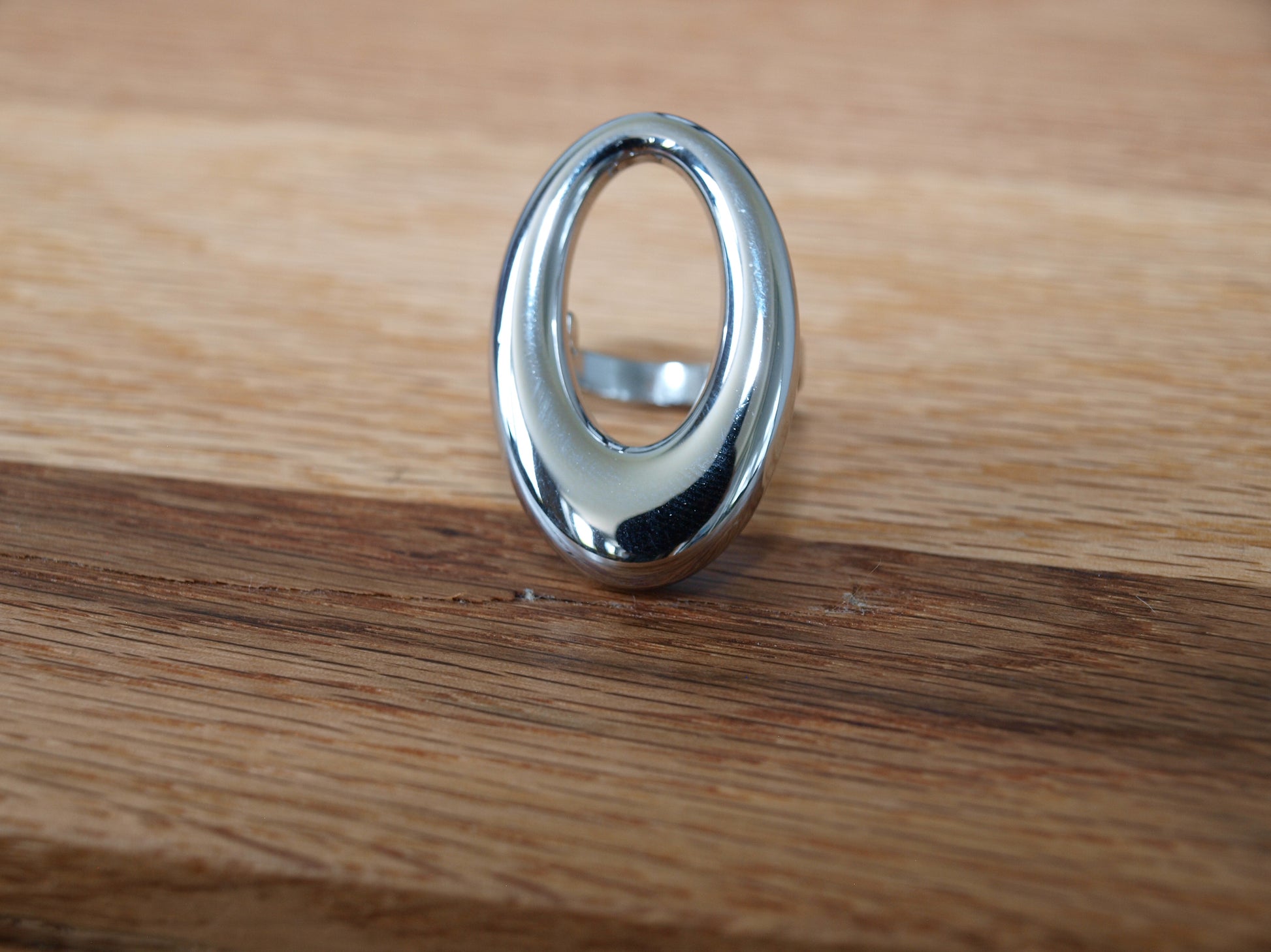 Ovaj veliki prsten u neobičnoj srebrnoj boji ističe se svojim minimalističkim dizajnom praznog kruga. Savršen za one koji vole nepredvidive modne detalje, donosi dozu odvažnosti i sofisticiranosti svakom izgledu.
