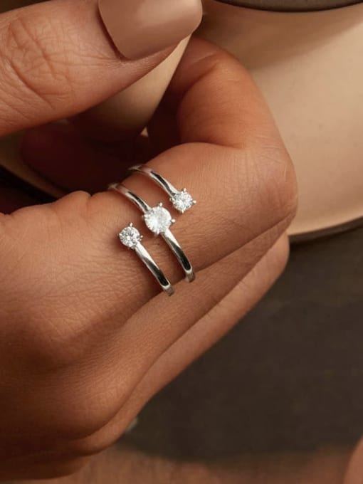 Ovaj srebreni prsten oduševljava s tri skladna niza, svaki ukrašen jednim cirkonom koji se igraju svjetlom. Dodajte vedrinu i sjaj svom stilu uz ovaj razigrani komad nakita!