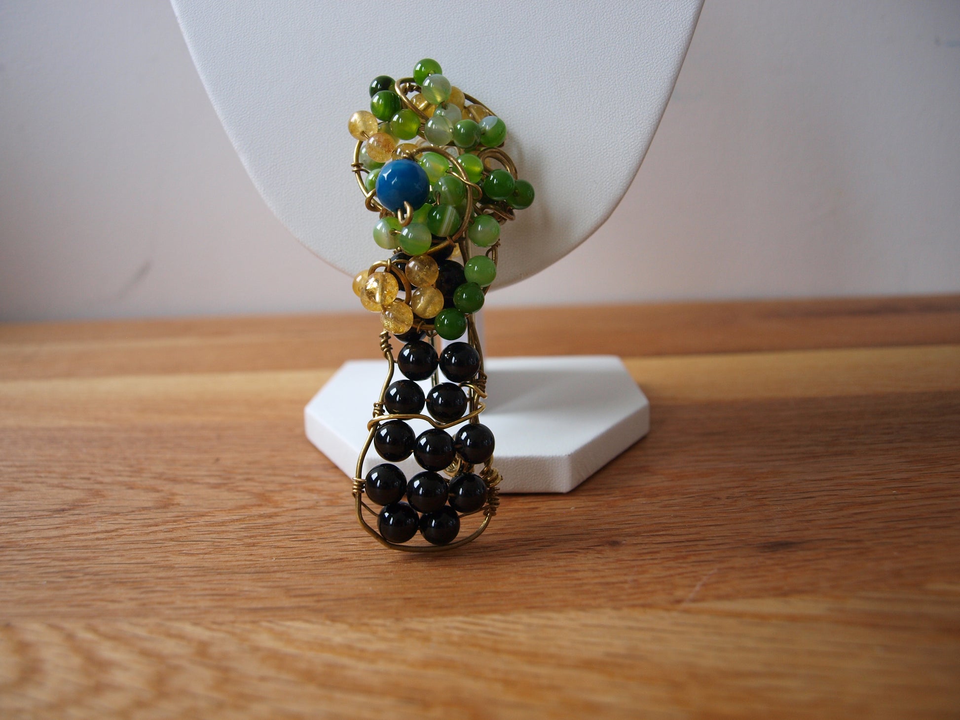 ✨ Izrada – cijela kompozicija upletena je mesinganom žicom koja spaja sve elemente u skladnu, organsku cjelinu.