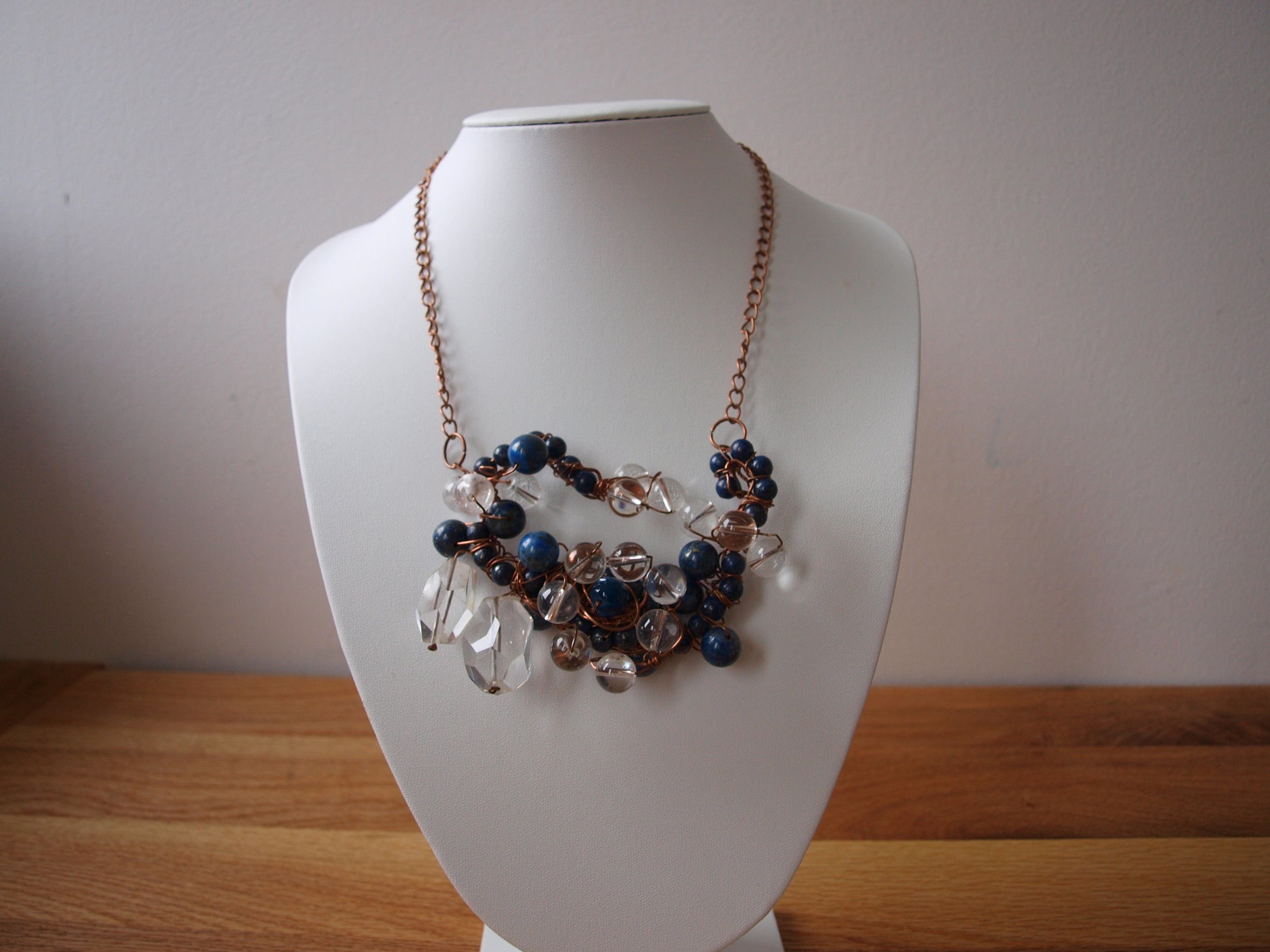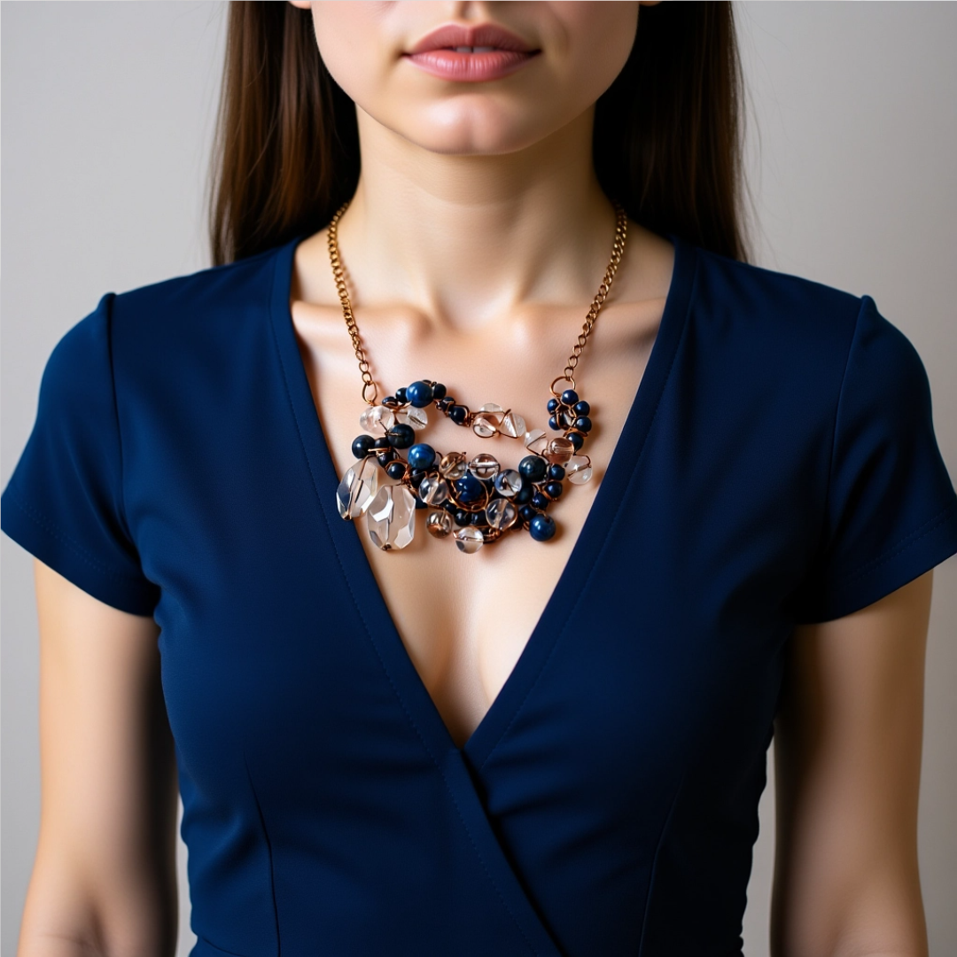 Kamena rapsodija je simfonija kristalne čistoće i nebeskog plavetnila, gdje se gorski kristal i lapis lazuli prepliću u bakrenoj žici, stvarajući komad nakita koji odzvanja harmonijom neba i zemlje, uma i duha.