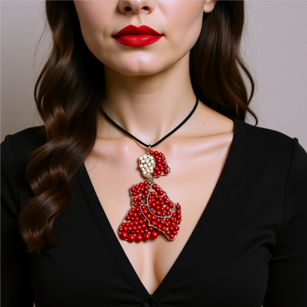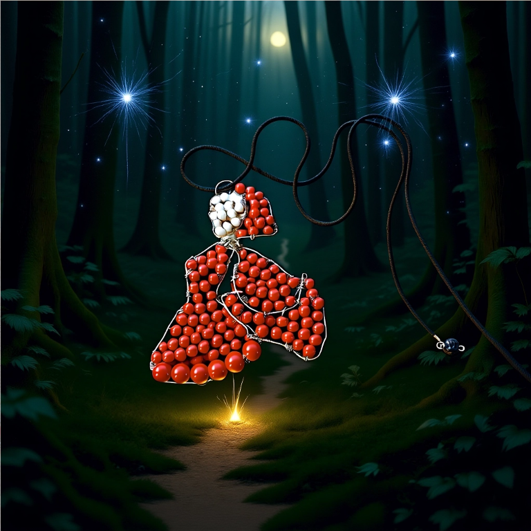 Otkrijte čaroliju bajke s ovom jedinstvenom ogrlicom koja spaja umjetnost i eleganciju. Svaki detalj privjeska u obliku Crvenkapice pažljivo je ručno izrađen od pažljivo odabranog poludragog kamenja.