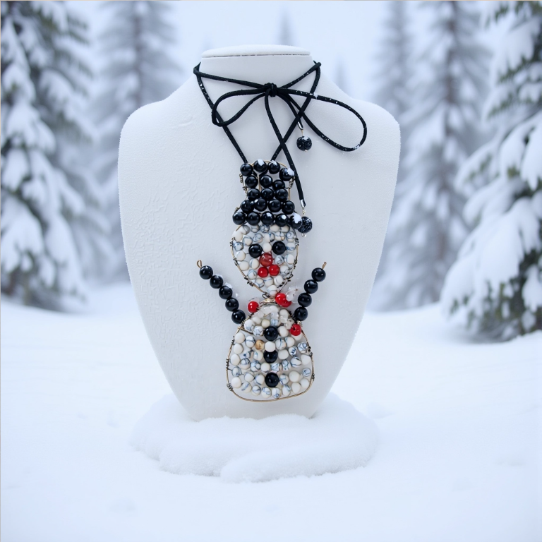 Dočarajte čaroliju zime s ovim šarmantnim privjeskom u obliku snjegovića. Svaki detalj pažljivo je ručno oblikovan od pažljivo odabranog poludragog kamenja, stvarajući veselog zimskog prijatelja koji donosi radost i toplinu u hladne dane. Prirodna ljepota kamenja daje ovom snjegoviću jedinstveni karakter i šarm.